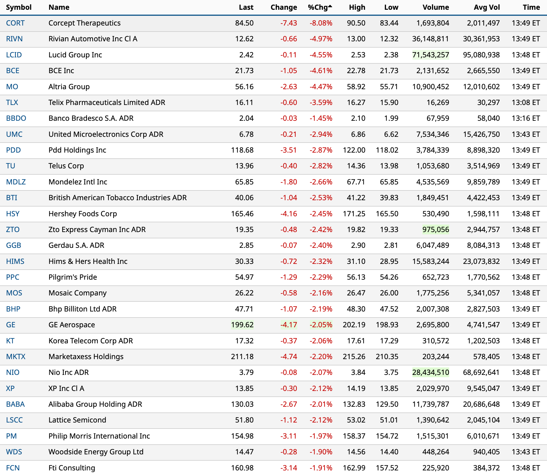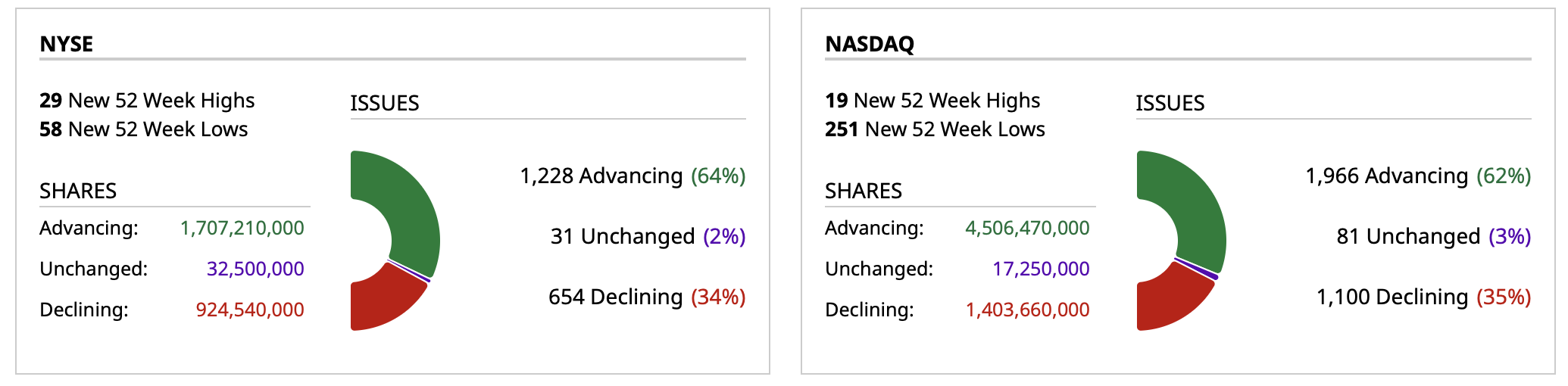 - NYSE volume 29% below its one-month average;
