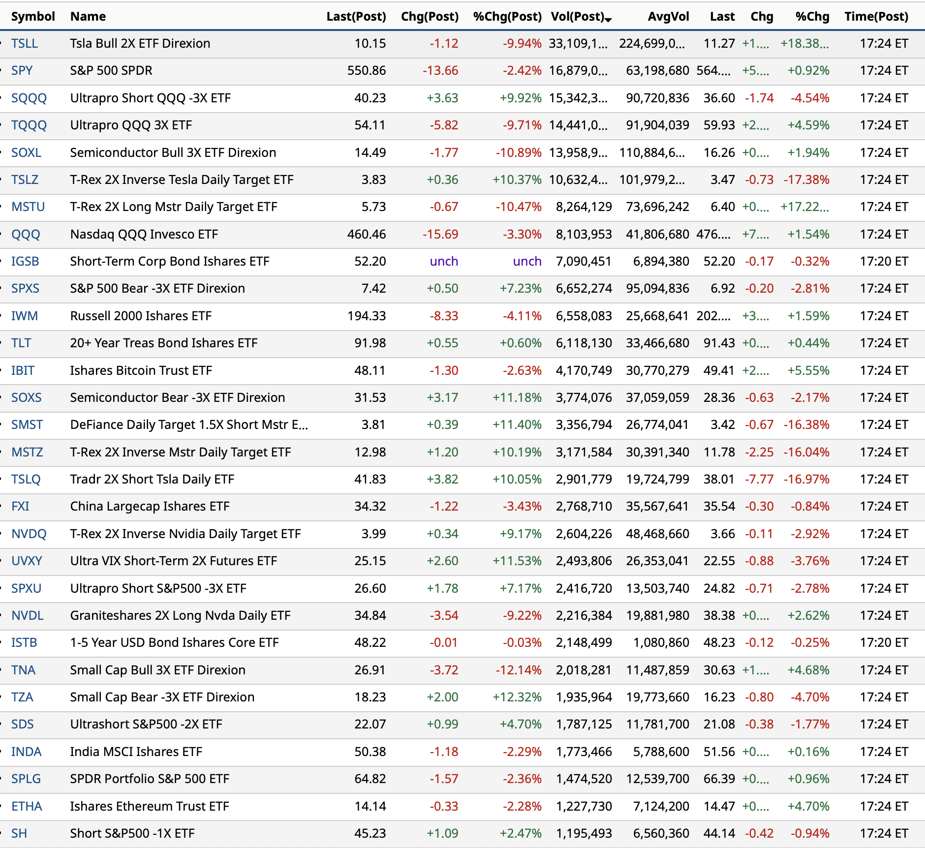 Most Active ETFs After Hours