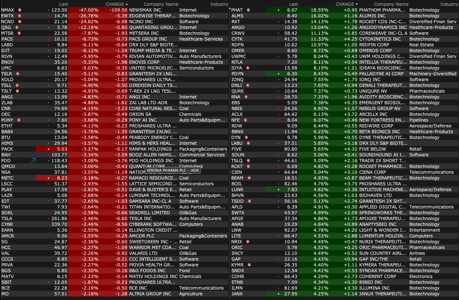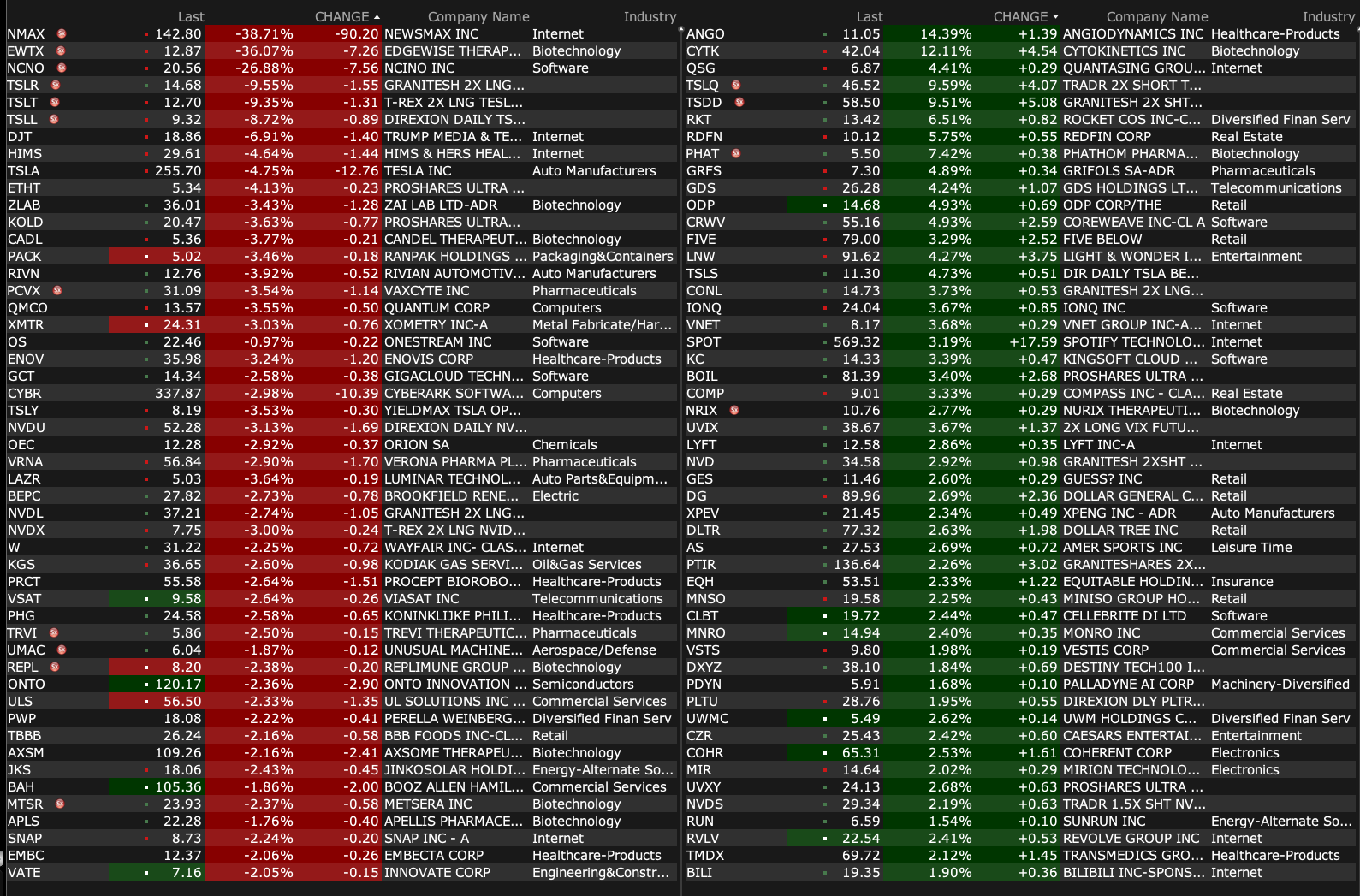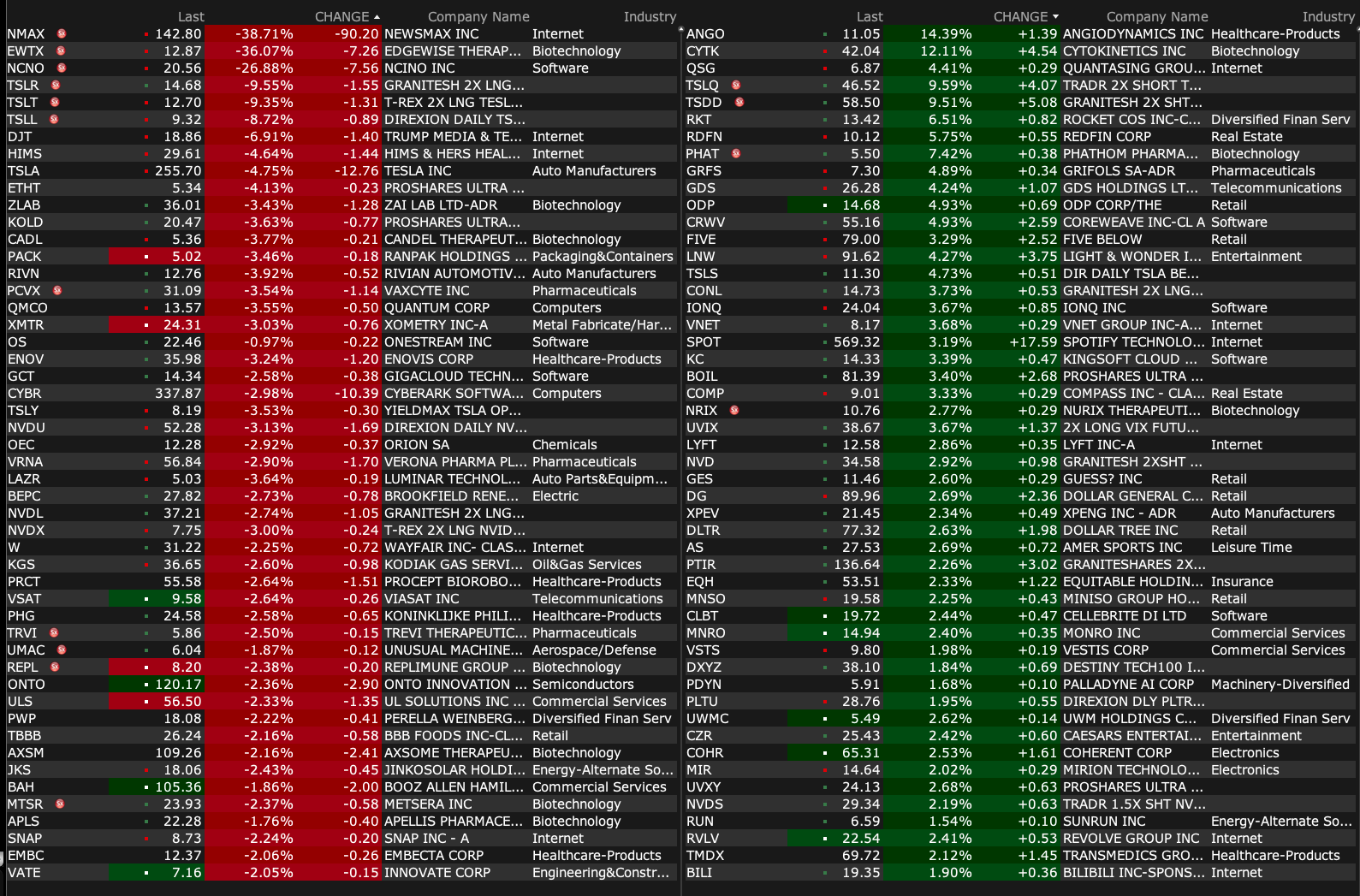 -NMAX -24% (weakness following strong IPO)