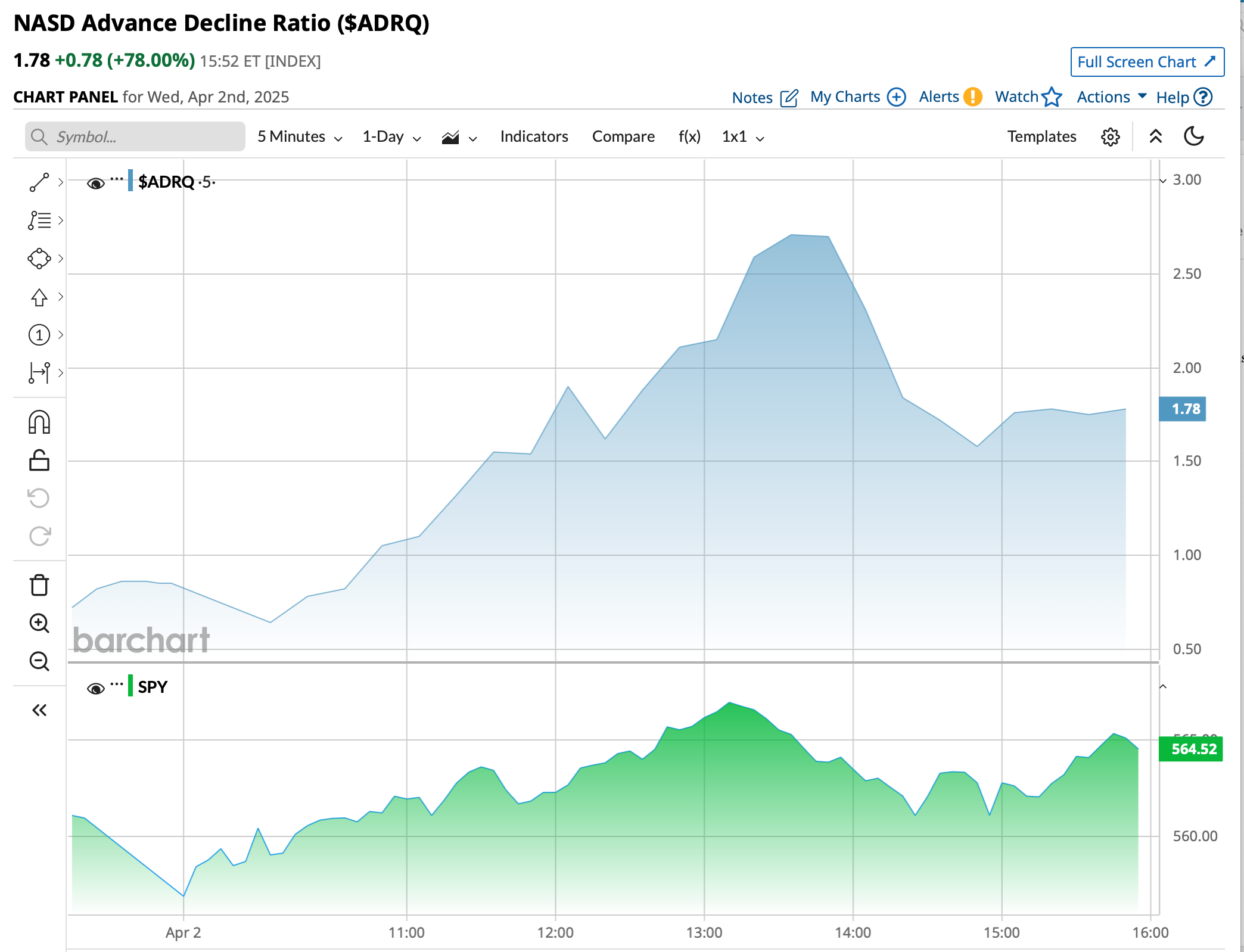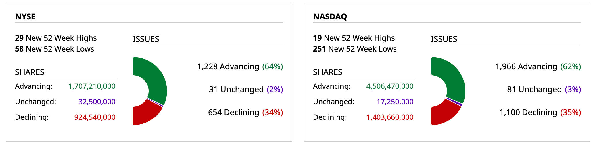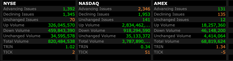 - Nasdaq volume 55% above its one-month average;
