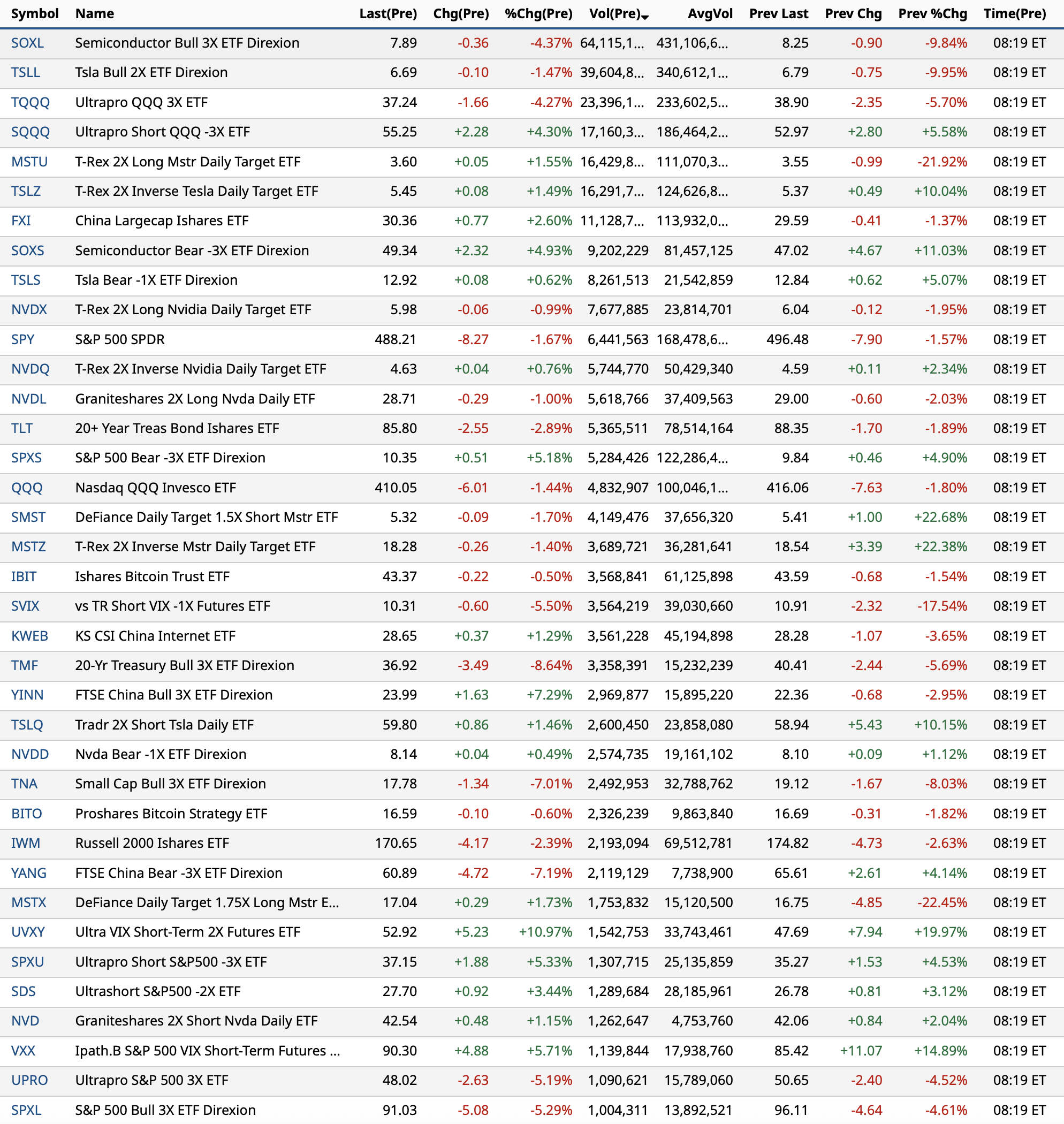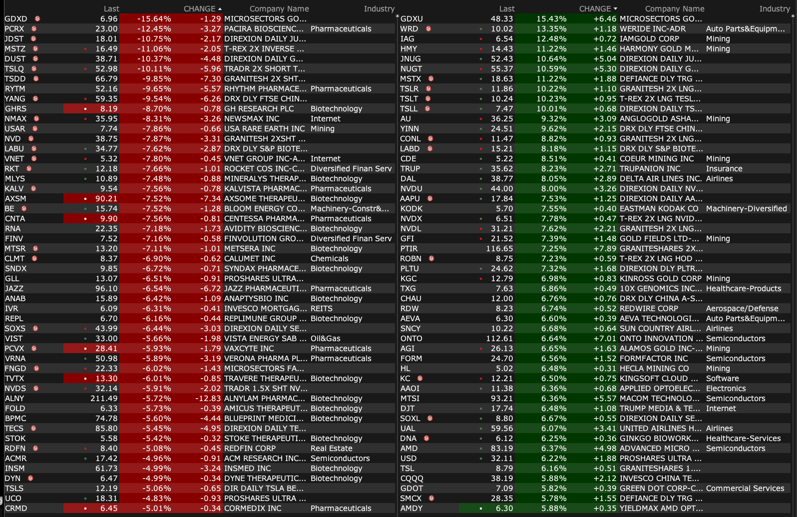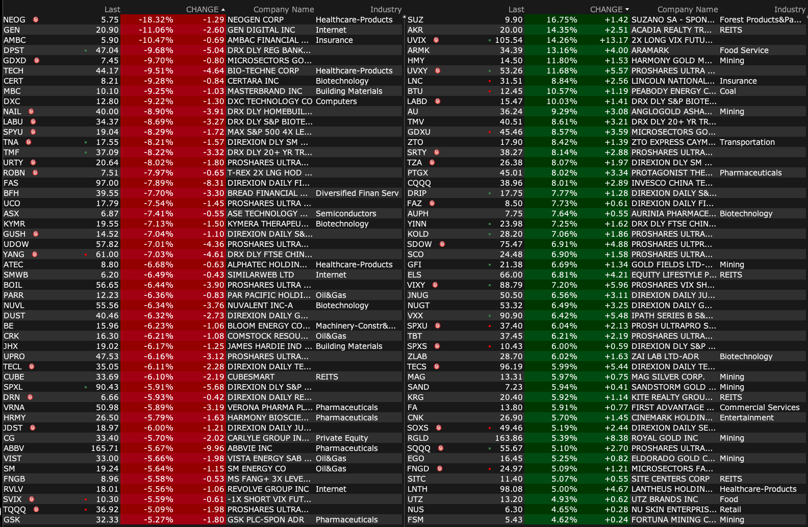 -PFE -4.5% (weakness following Trump announcement that pharma tariffs are coming shortly)