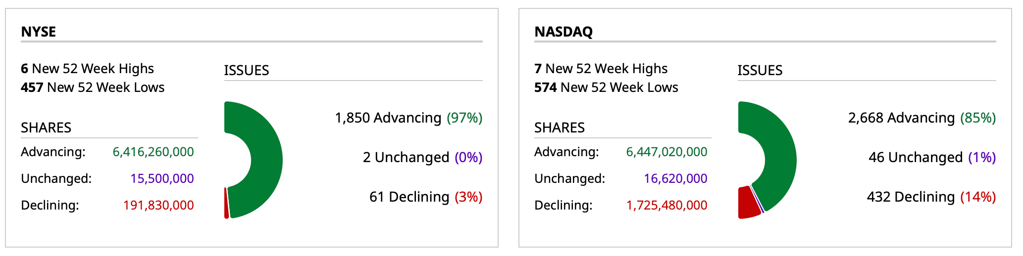Bond prices cratered (at one point (TLT) was -$3) and bond yields leaped by 30 basis points (now up by only six basis points in yield):