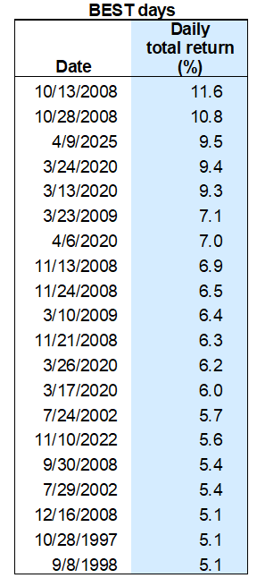Most of The Best Daily Returns Since 1990 Have Occurred in Bear Markets