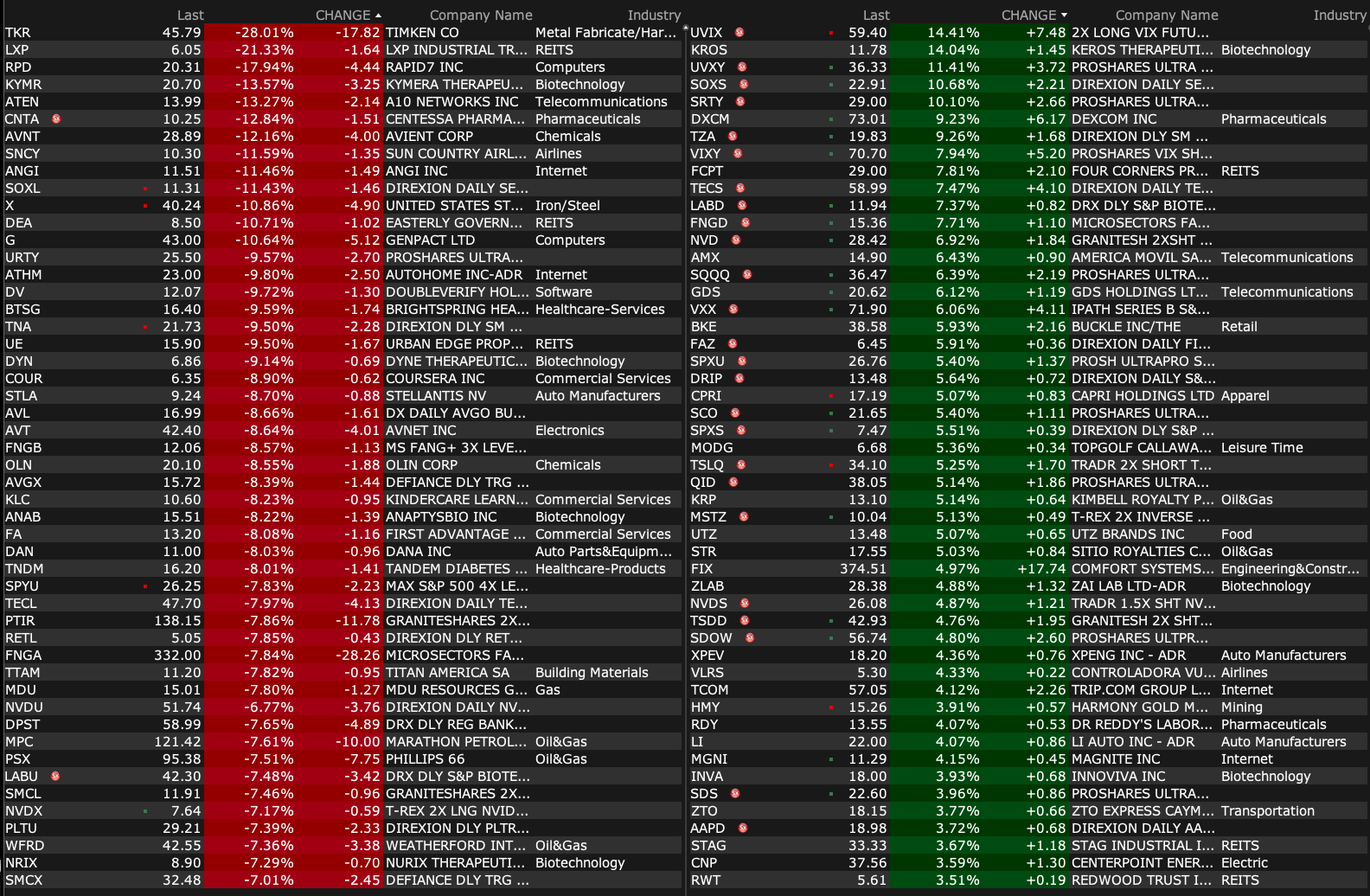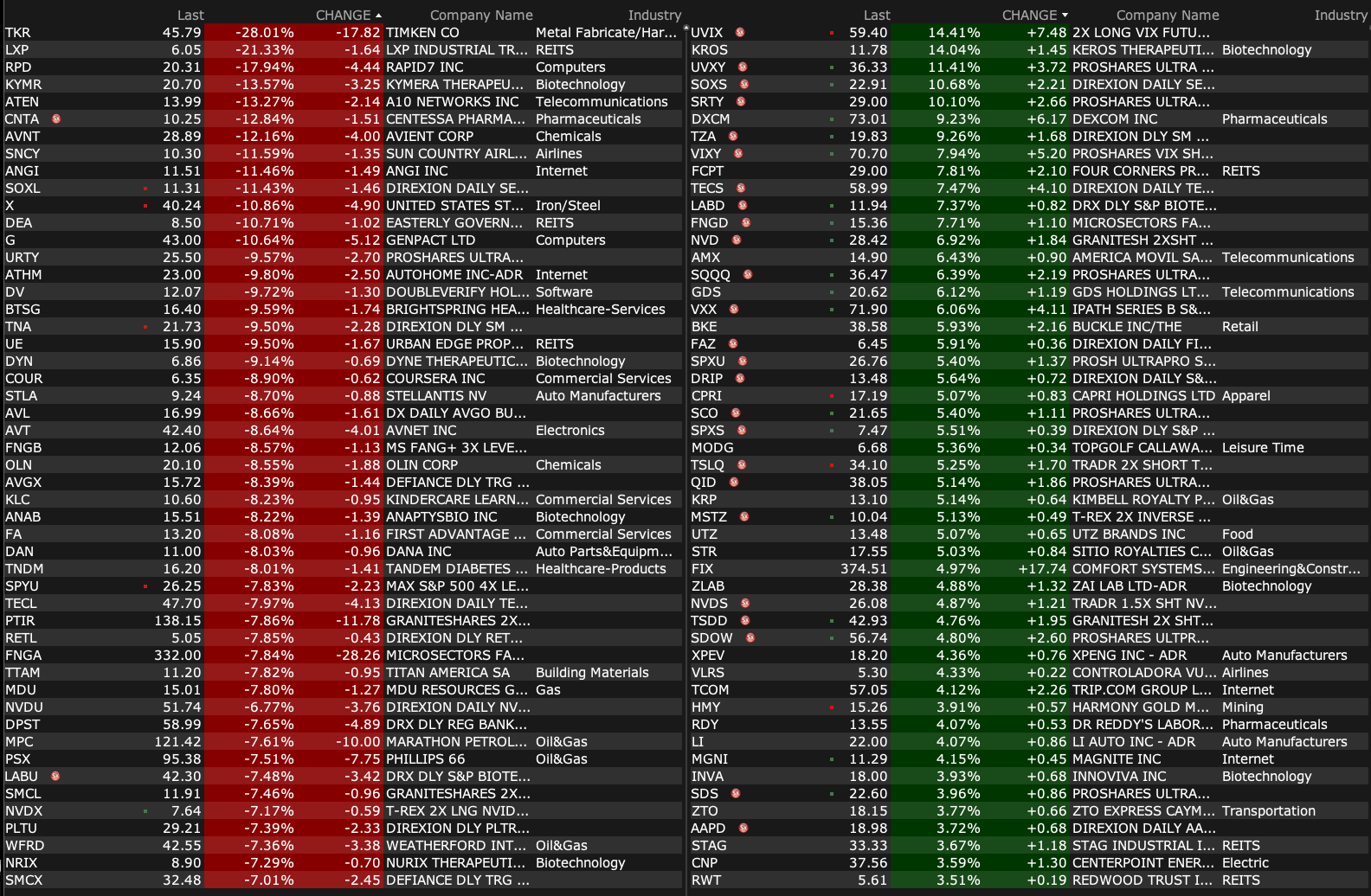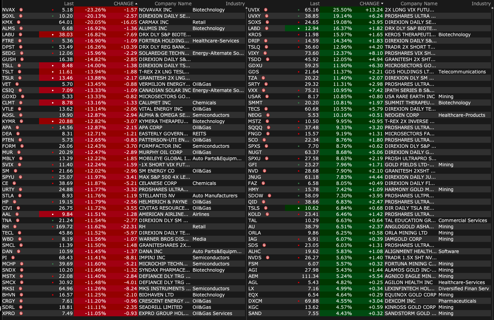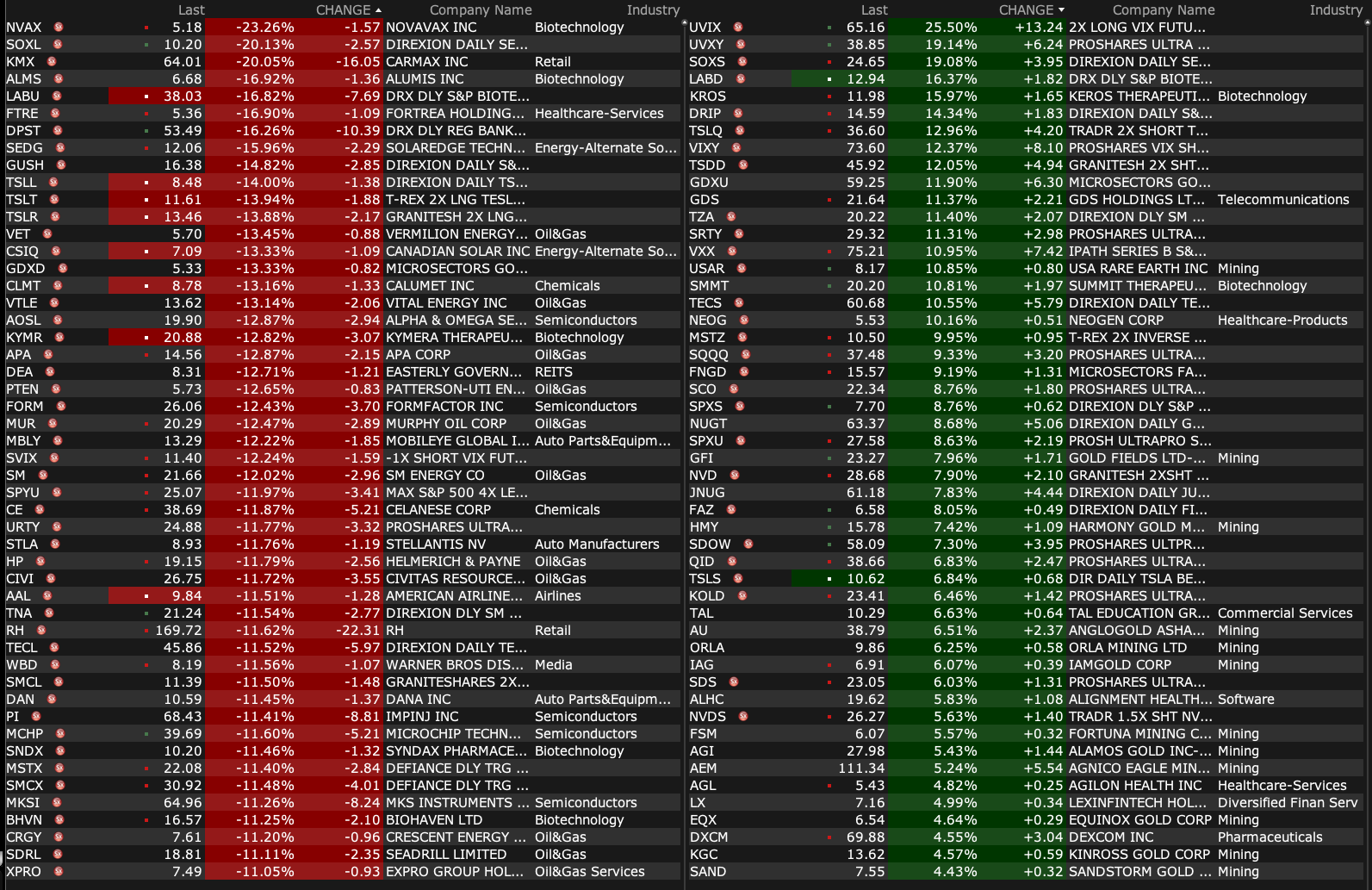 - VIX index: up 21.27% to 40.77