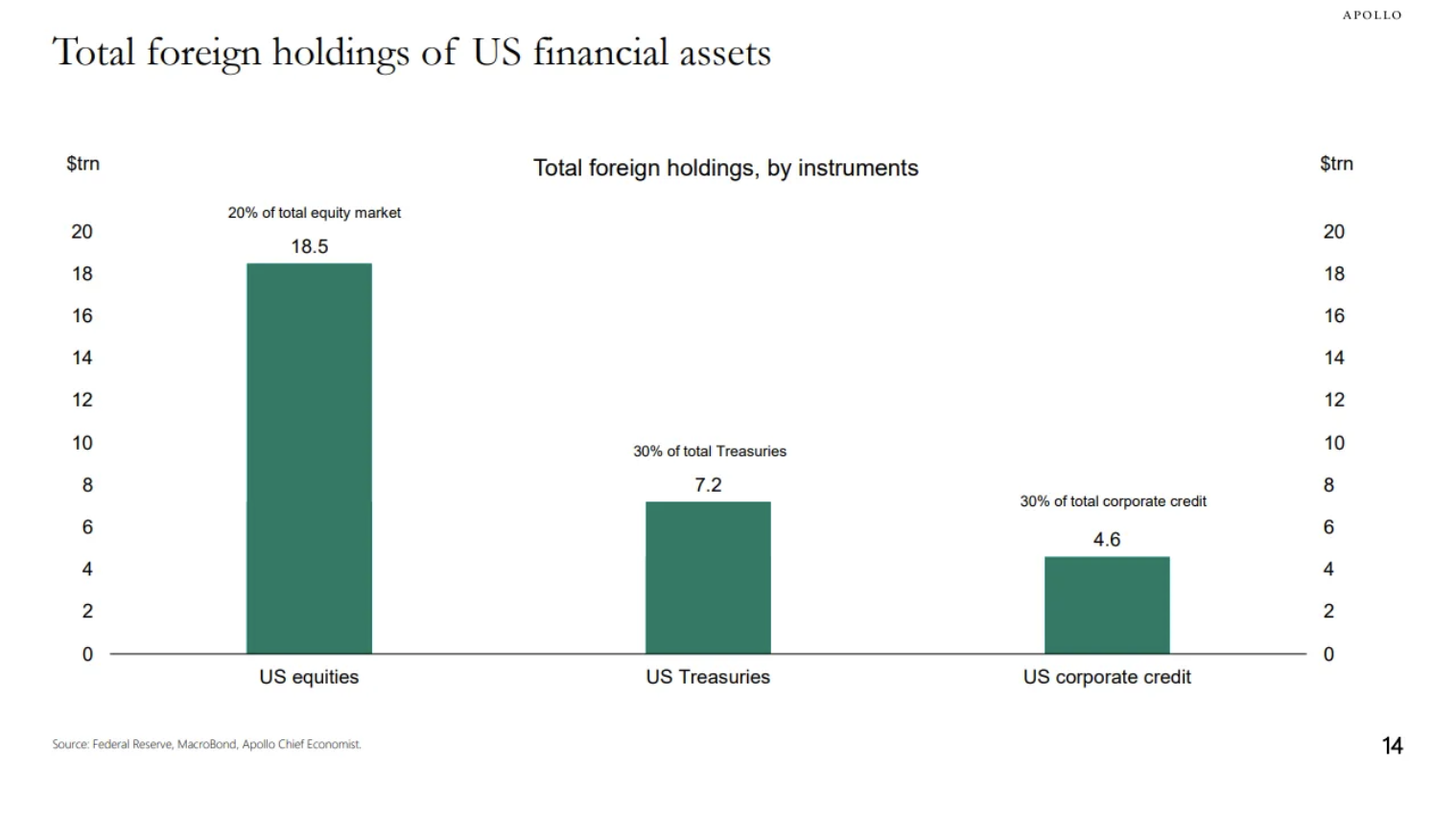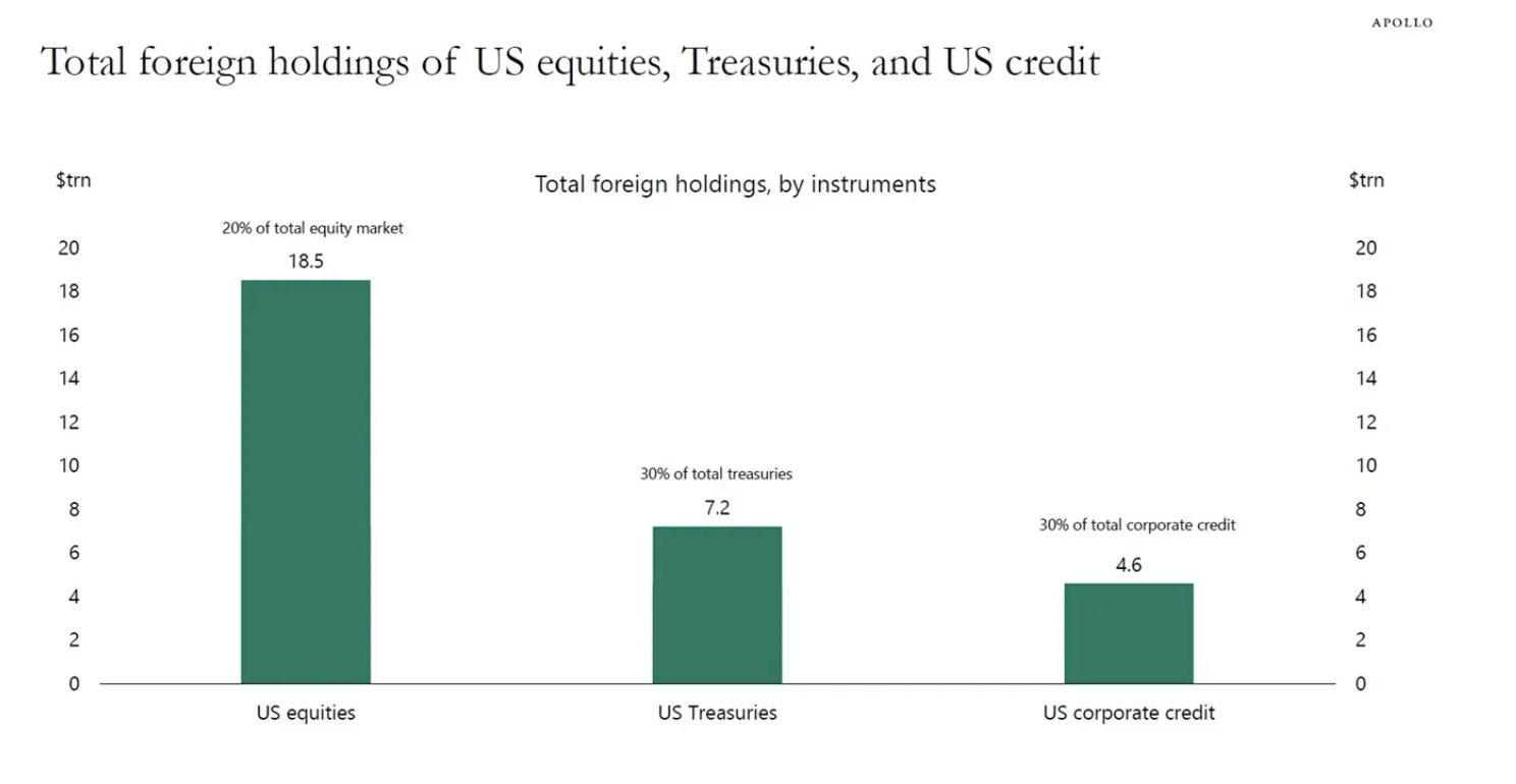 As we debate the impact of foreign selling of US assets, here's another great chart from my friend Torsten Slok so we can see to what extent they own US stocks and bonds, including corporates.