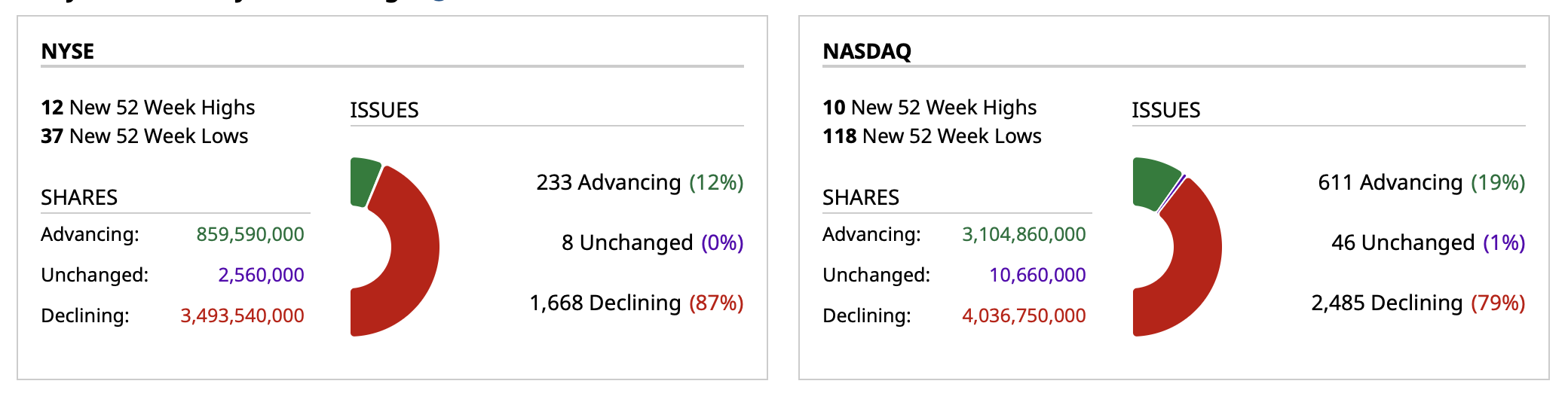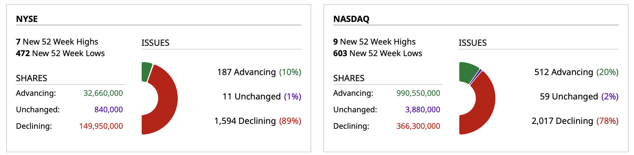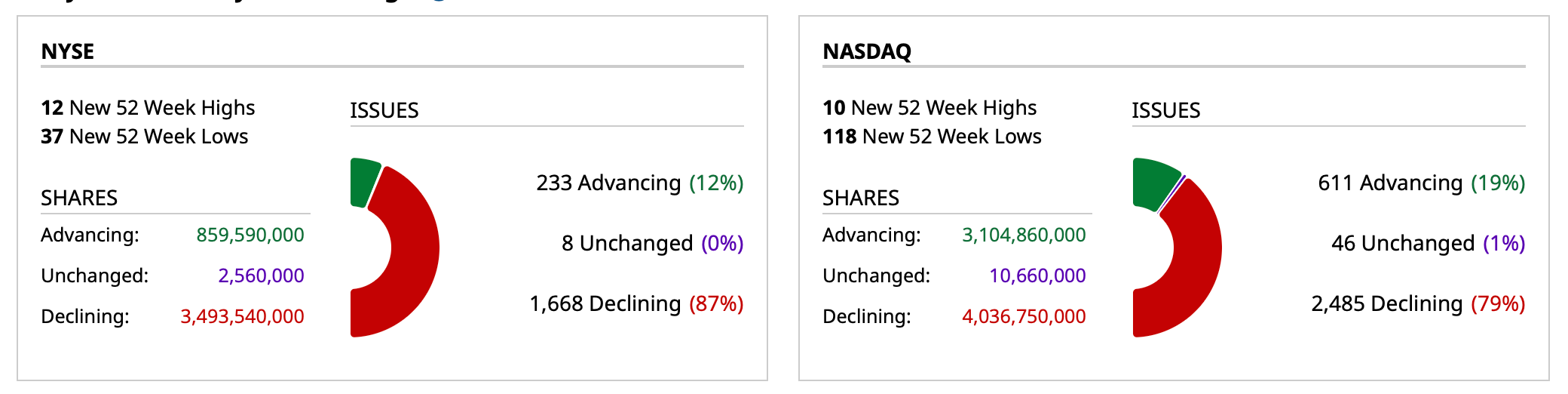 - Nasdaq volume 67% above its one-month average;