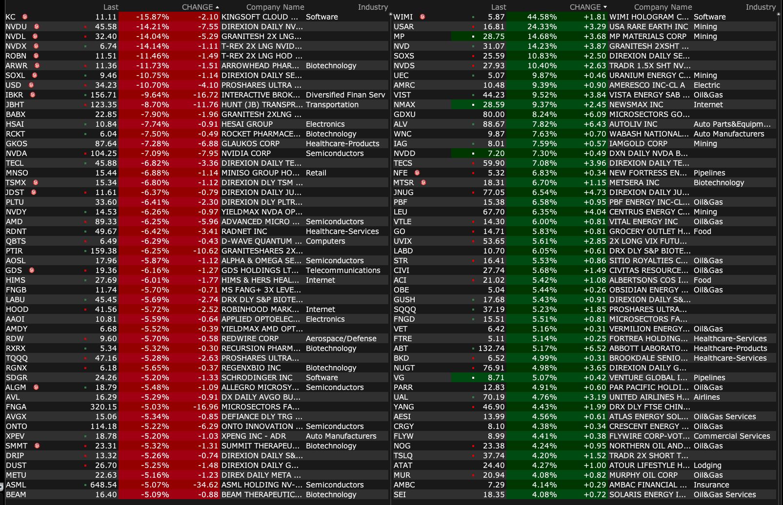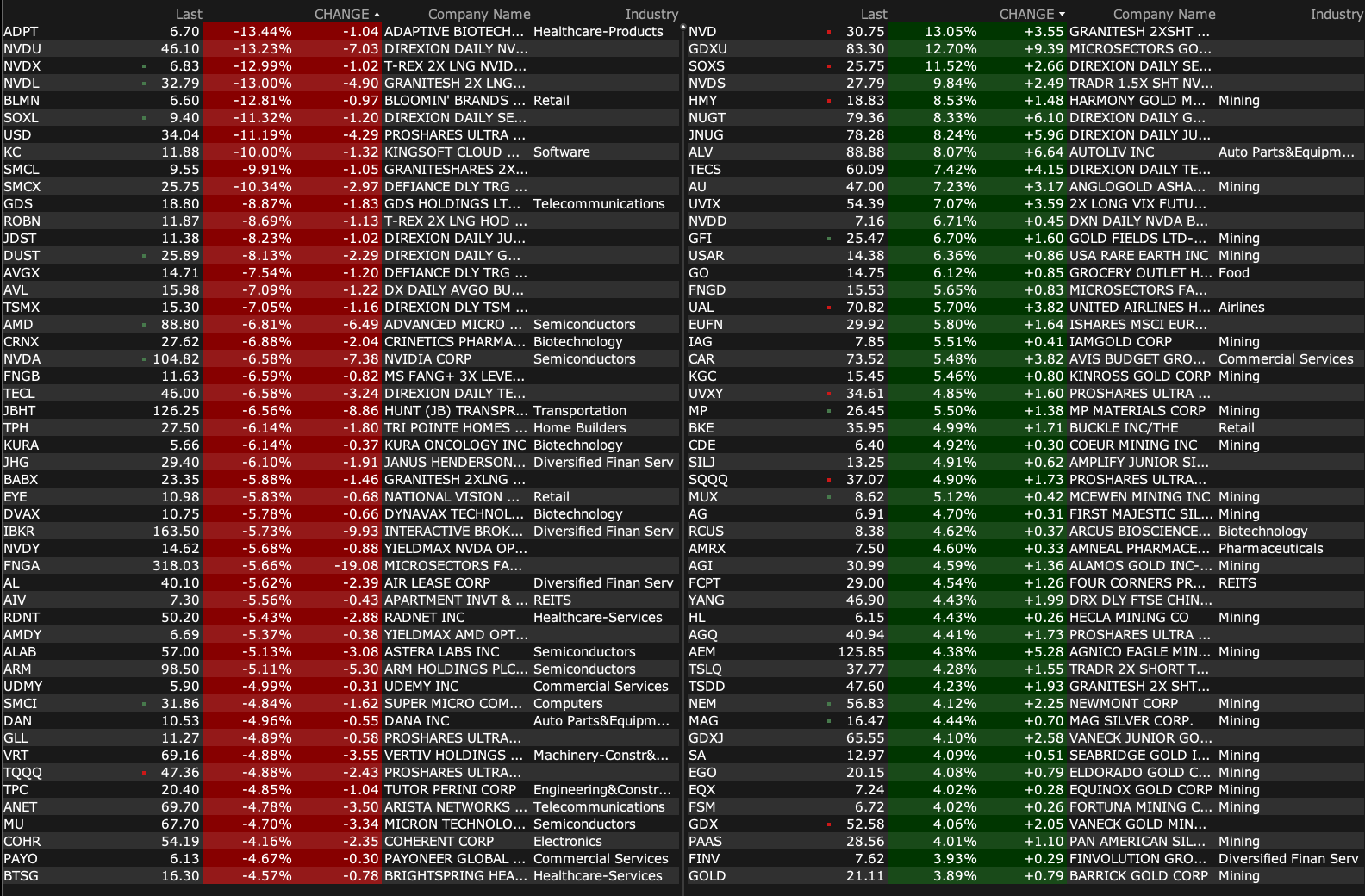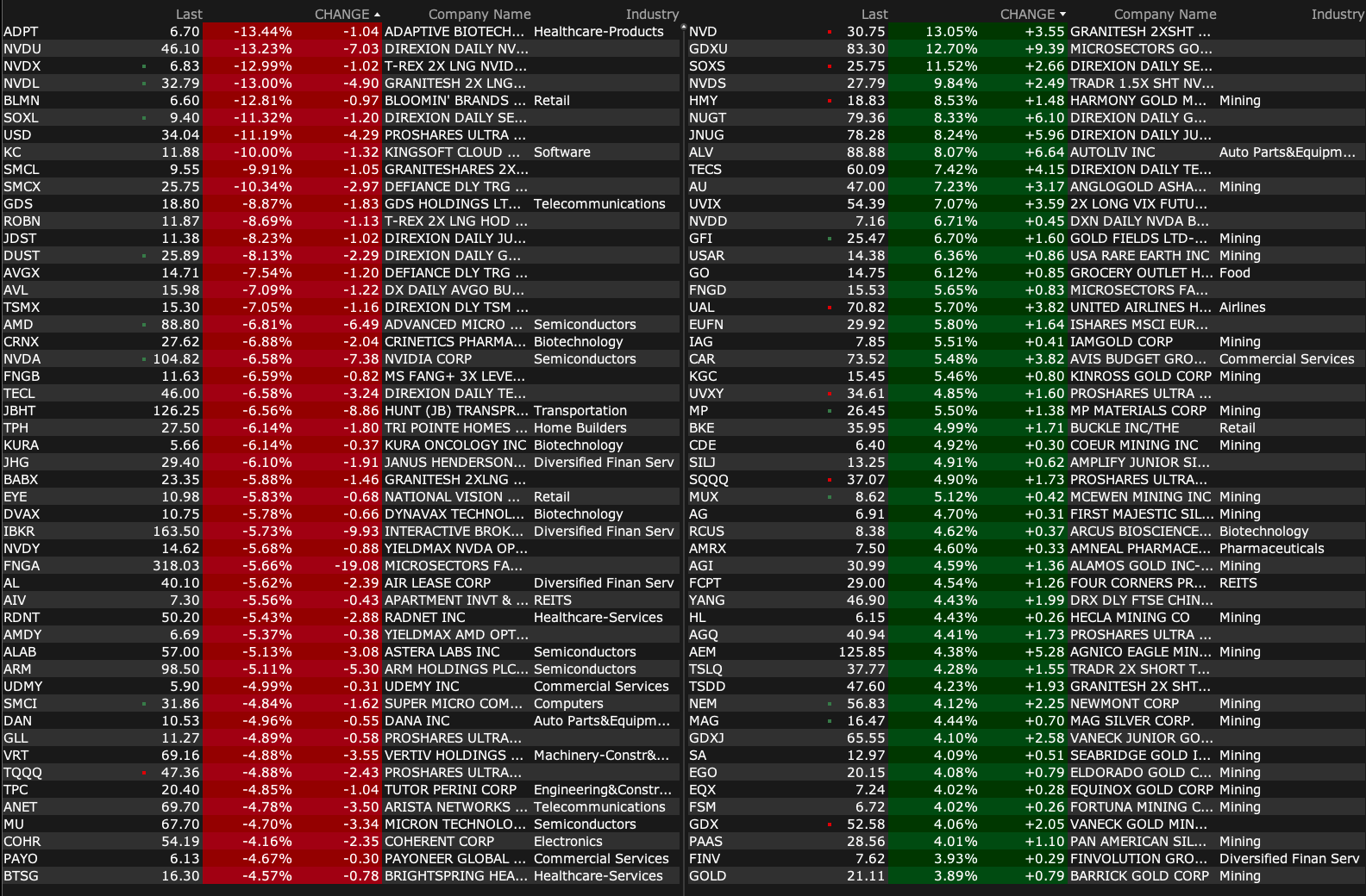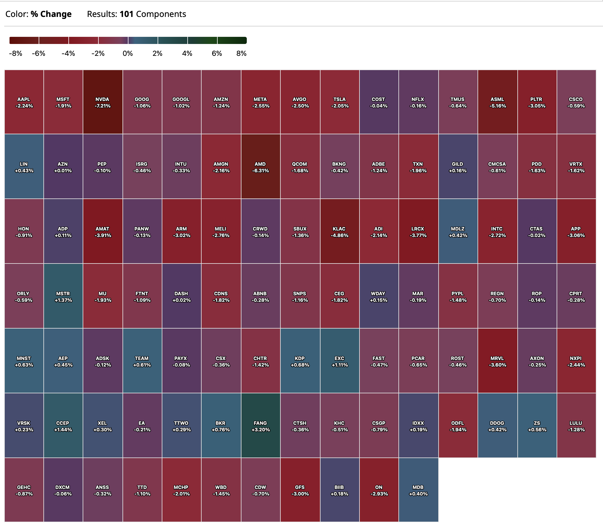 -NVDA -6.3% (US government informed Company it requires a license "for the indefinite future" for export to China for its H20 integrated circuits and any other circuits achieving the H20’s memory bandwidth, interconnect bandwidth, or combination thereof; Expects $5.5B charges in Q1:2026 associated with H20 products)