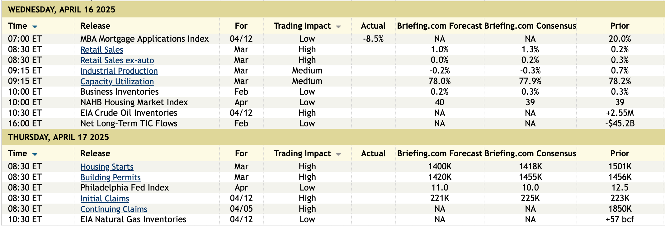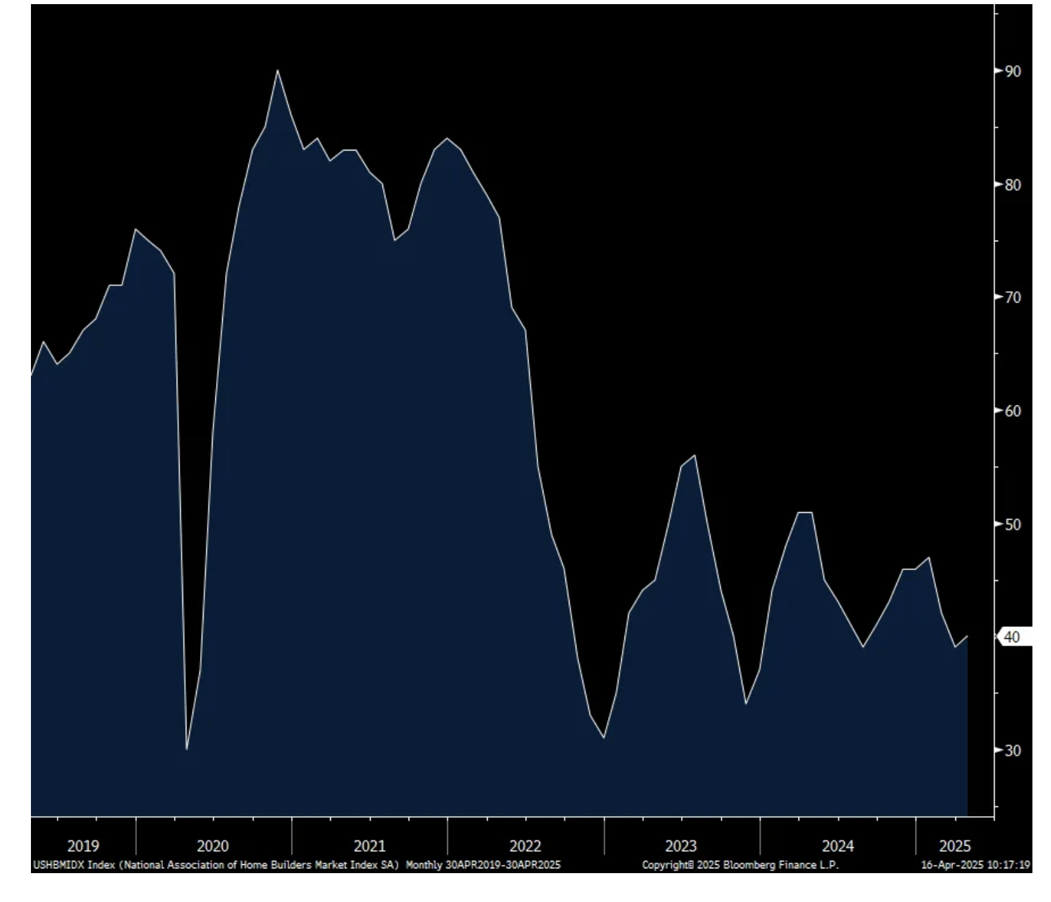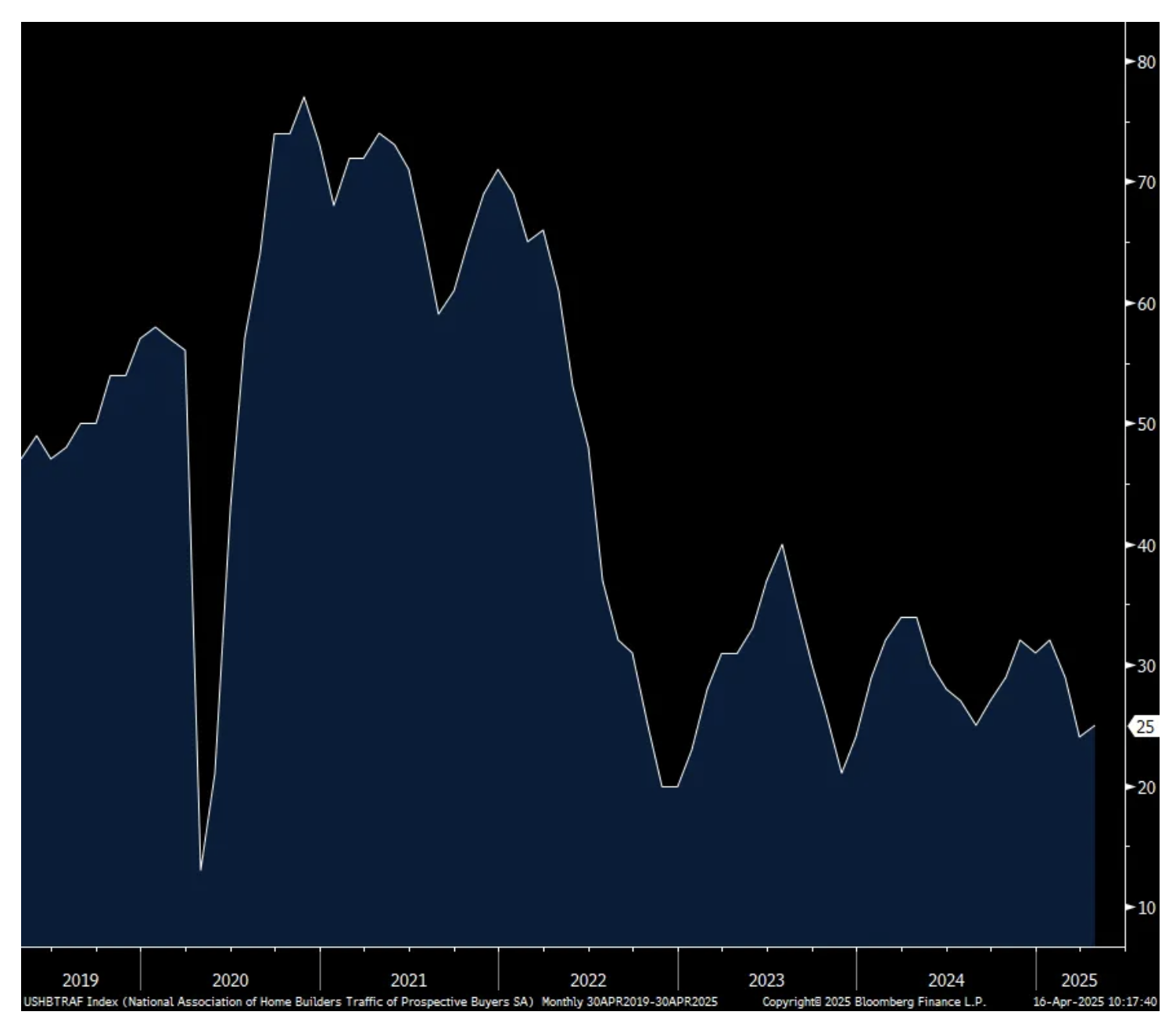 The press release from the NAHB was littered with tariff talk. While the April headline got a slight lift as “The recent dip in mortgage rates may have pushed some buyers off the fence in March, helping builders with sales activity,” builder visibility is clear as mud and business is getting more costly. “At the same time, builders have expressed growing uncertainty over market conditions as tariffs have increased price volatility for building materials at a time when the industry continues to grapple with labor shortages and a lack of buildable lots.”