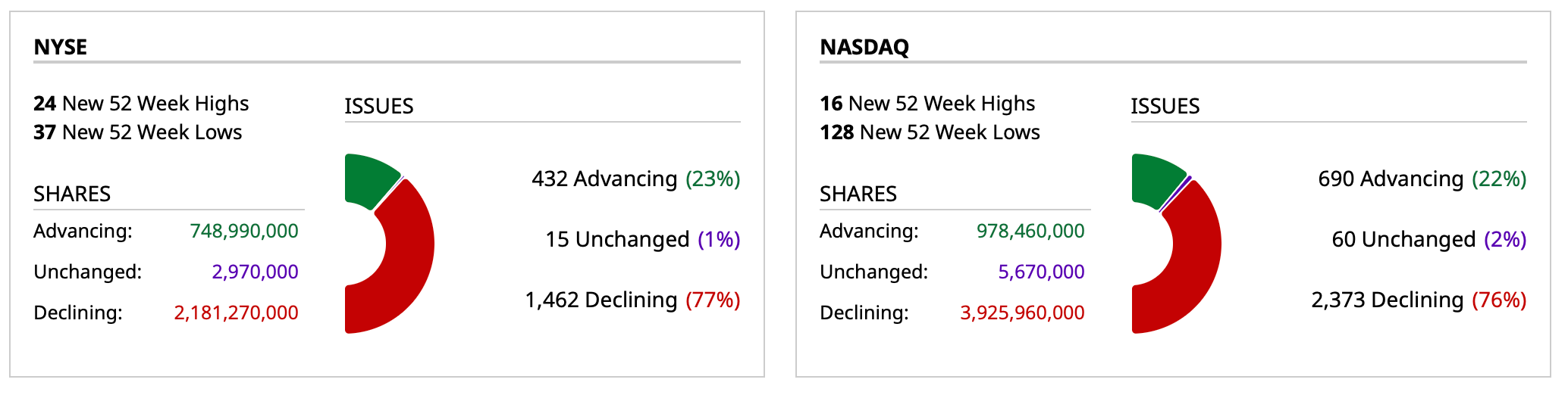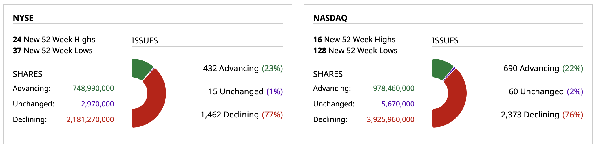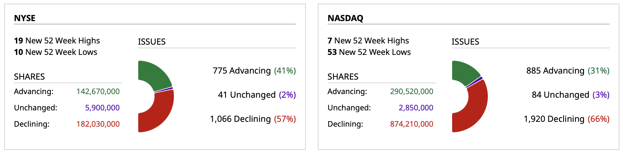 - NASDAQ volume 14% below its one-month average