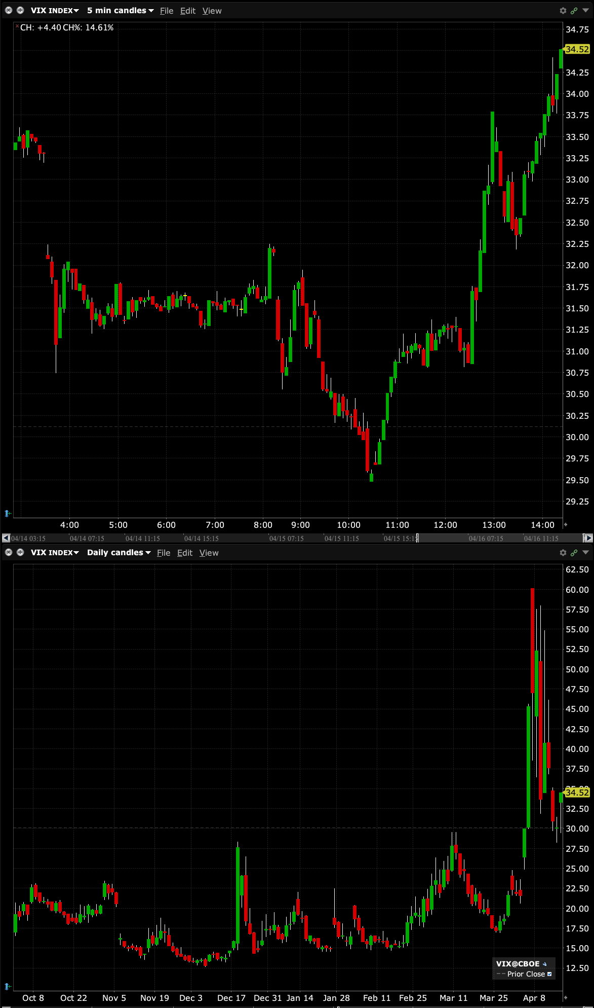 - VIX index: up 8.37% to 32.64