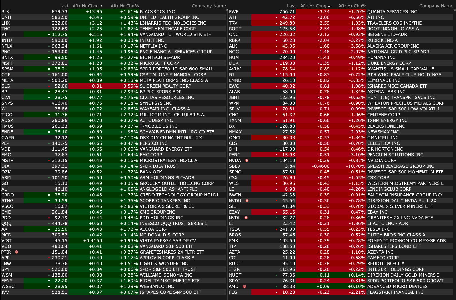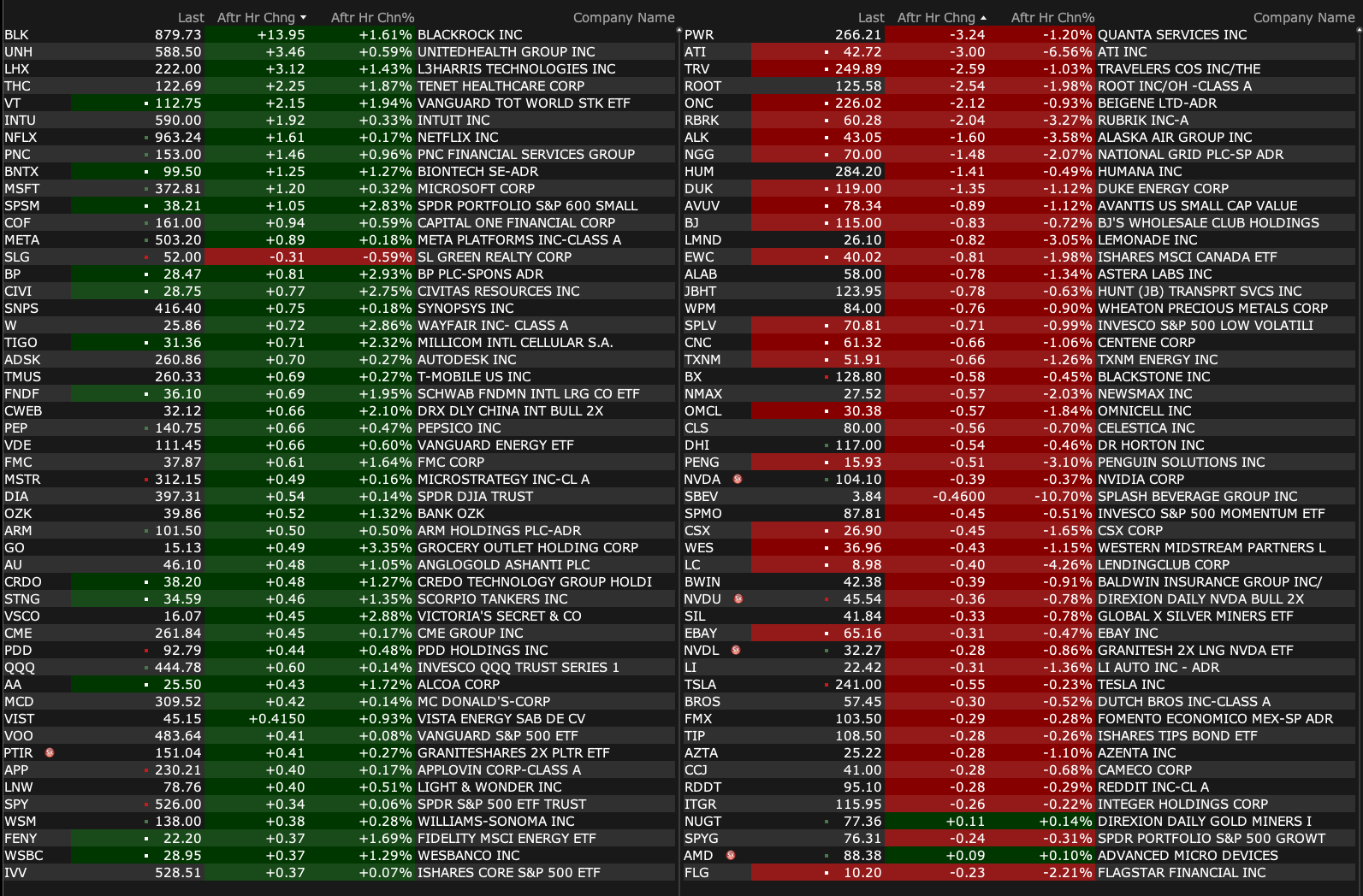 Wednesday's After-Hours Movers