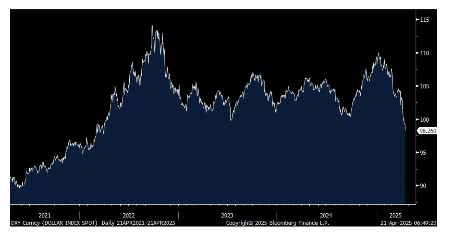 Another day of a weaker dollar, higher gold prices, higher bond yields and lower stocks. While some might say that a weaker U.S. dollar could be a lift to U.S. exporters, the problem with that is about 40% of goods imports are intermediate goods that end up in the finished product. That is now getting more expensive instead on top of the 10% global tariff and other tariffs like autos, steel, and aluminum. Will this quicken reshoring? Unlikely as the cost of construction has now jumped again and where do you think much of the equipment needed to build out a facility comes from? China. And, the weaker the dollar gets, the more expensive these tariffs also become for the US consumer.