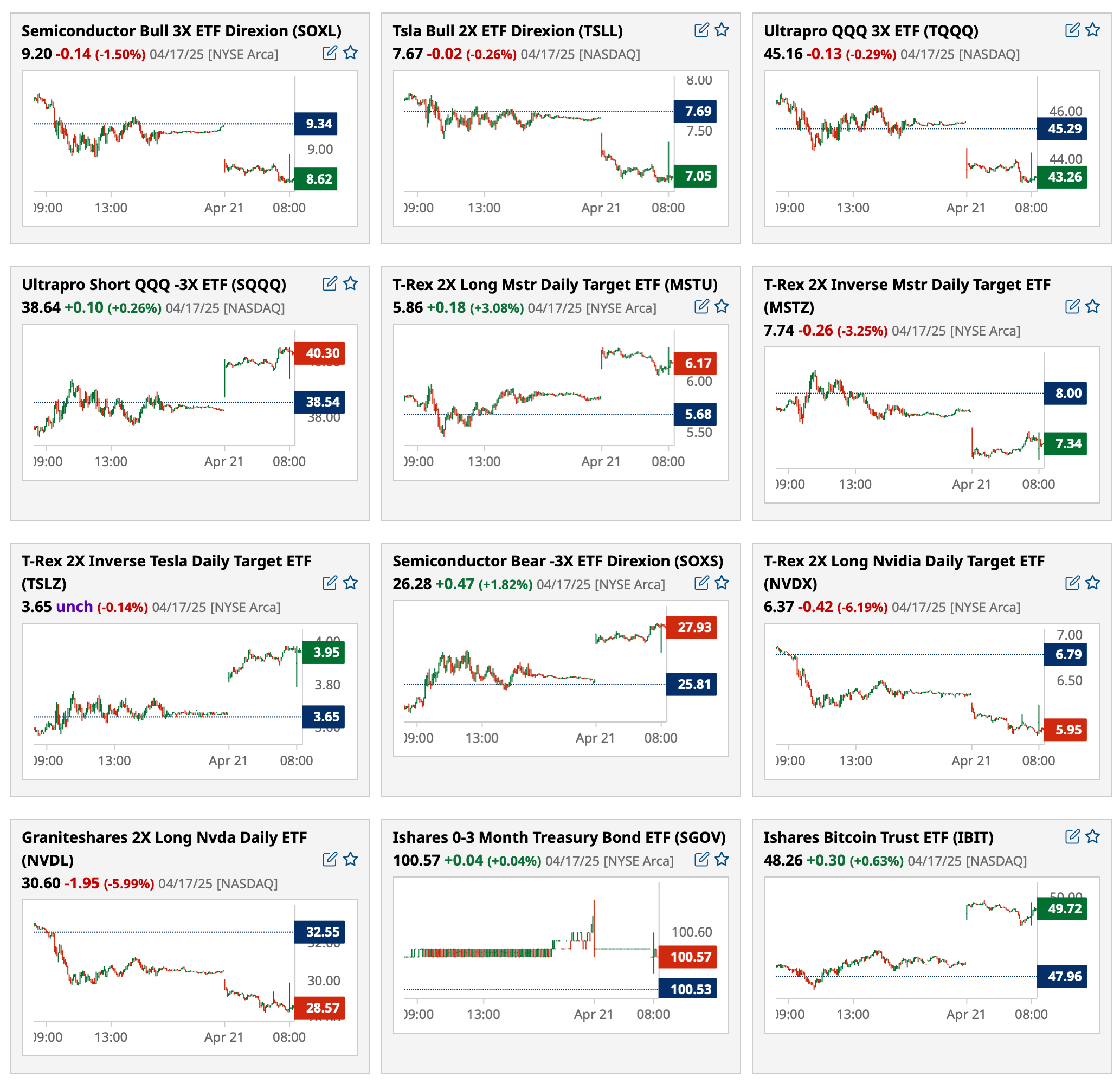There are too many to detail now (as I am trading actively) but will review prices in "Things Today."