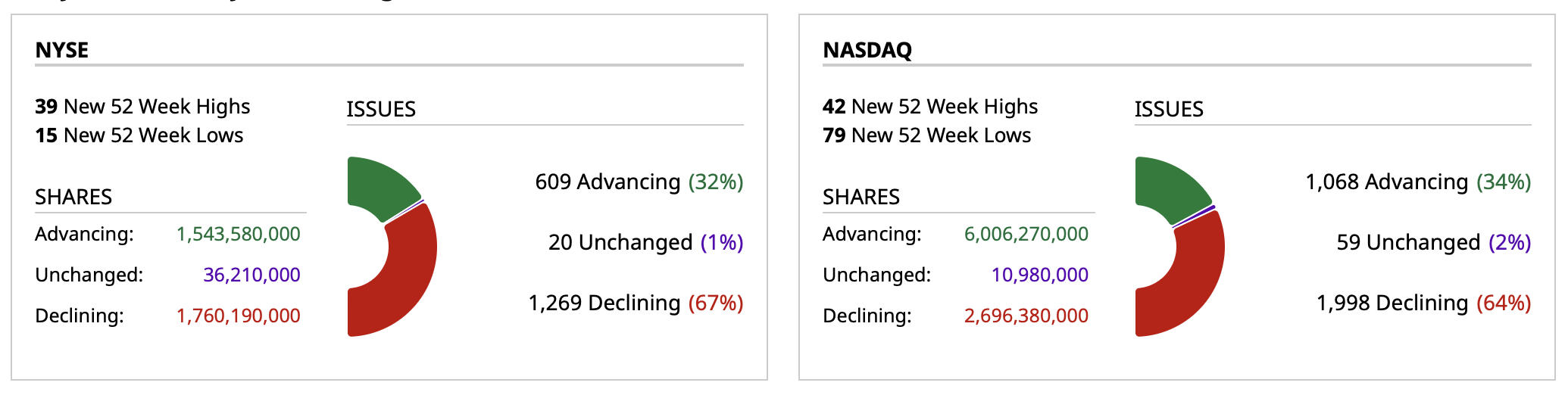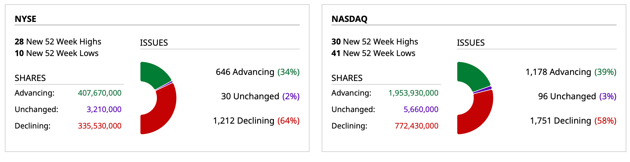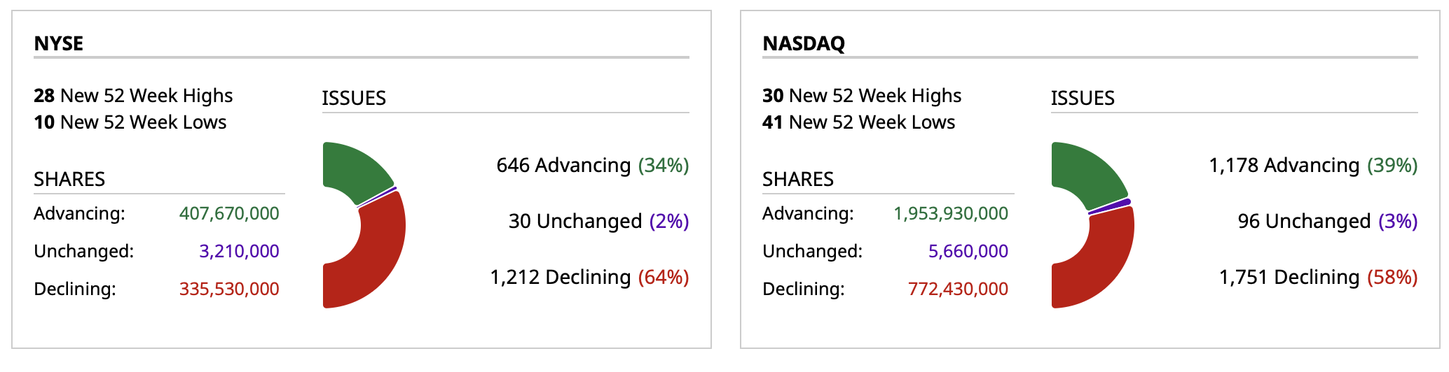 - NASDAQ volume 43% above its one-month average;