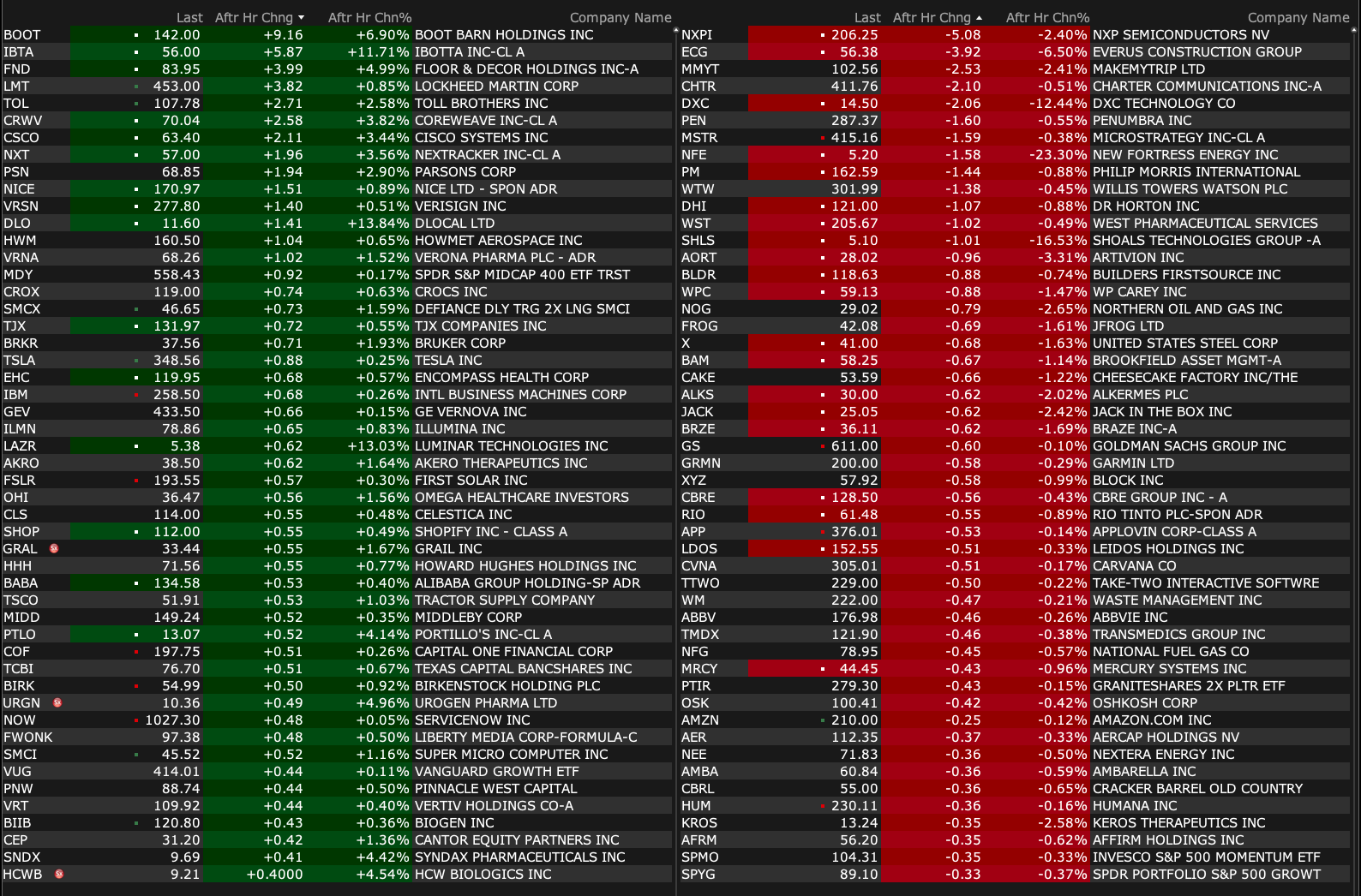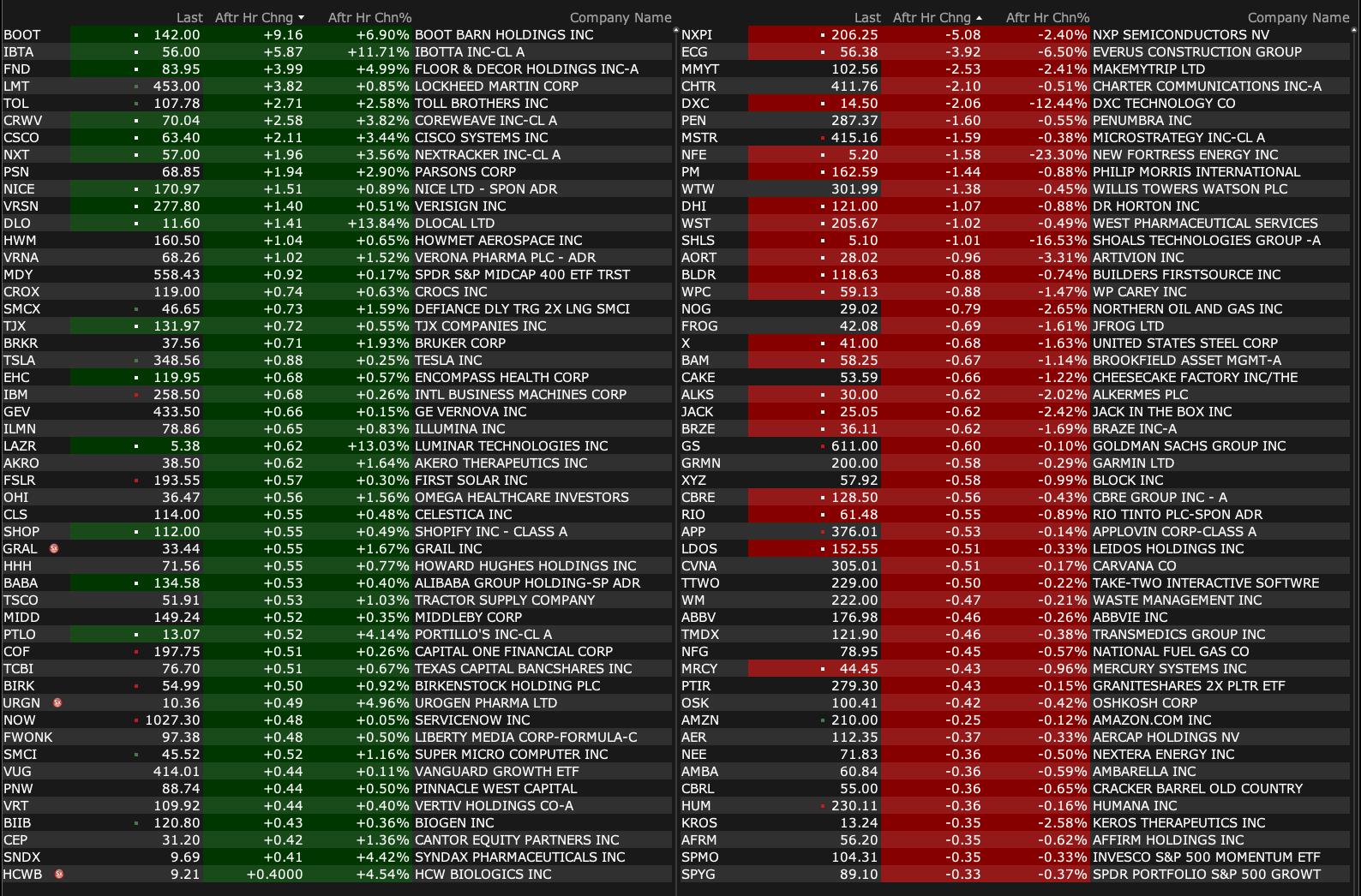 Wednesday's After-Hours Movers