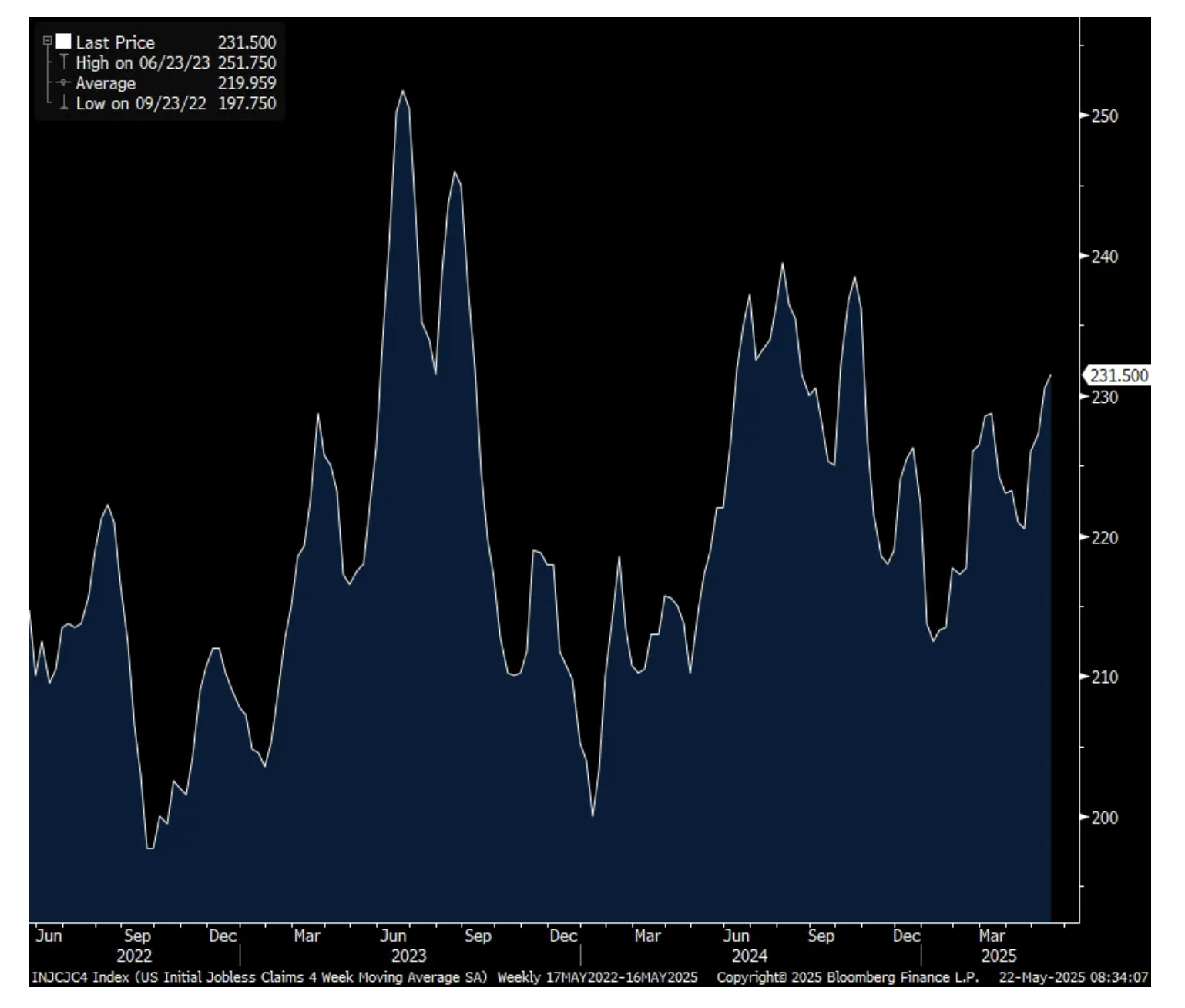 Initial claims fell to 227k from 229k and that was 3k below expectations. The 4 week average is now 232k vs 231k in the week before. Continuing claims, delayed by a week, though remained elevated around the highest since November 2021 at 1.903mm vs 1.867mm in the week before.