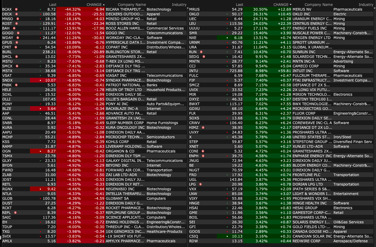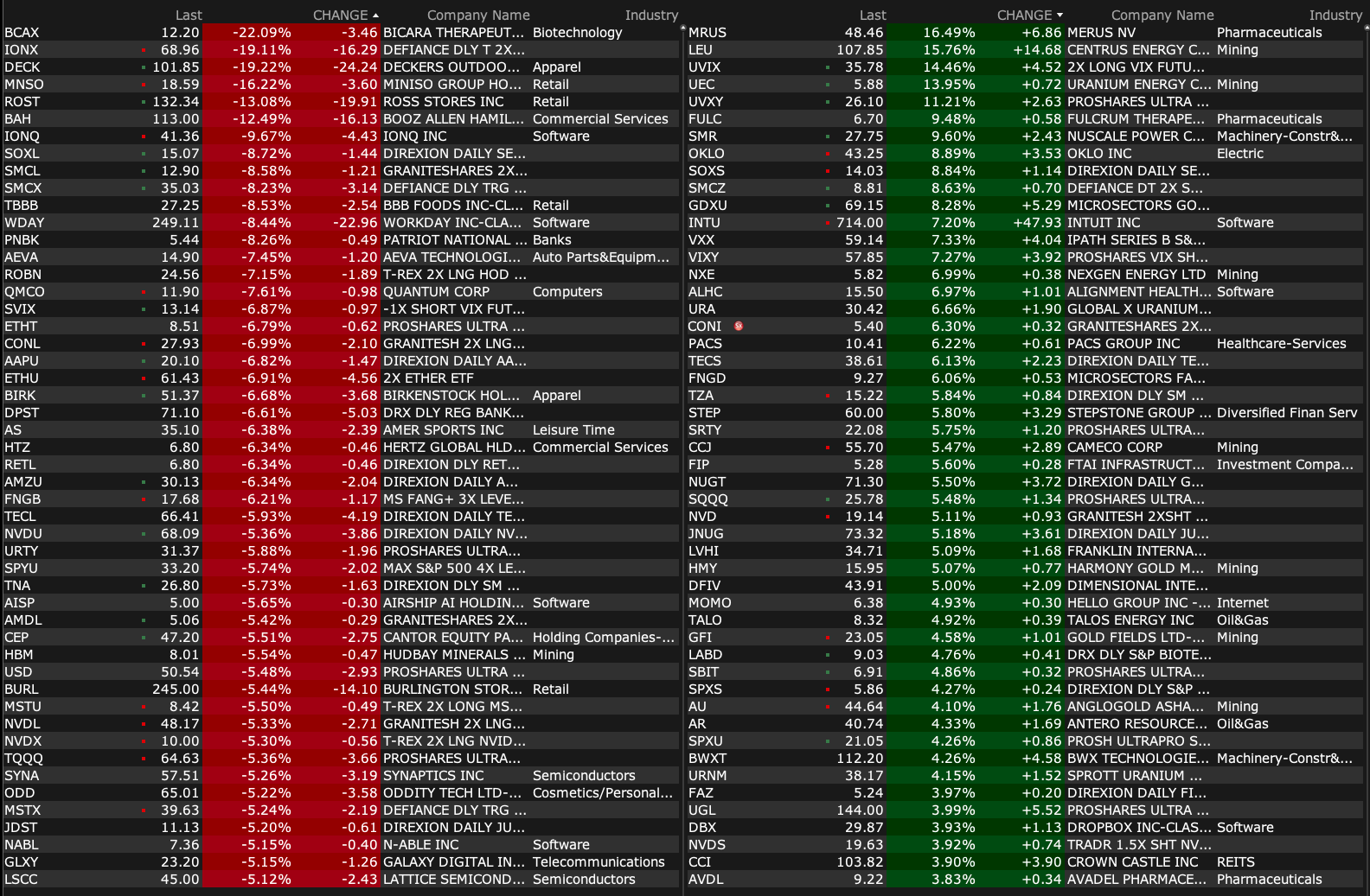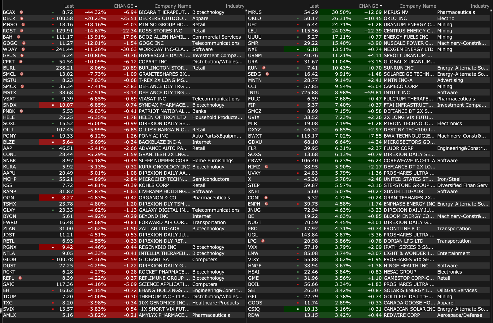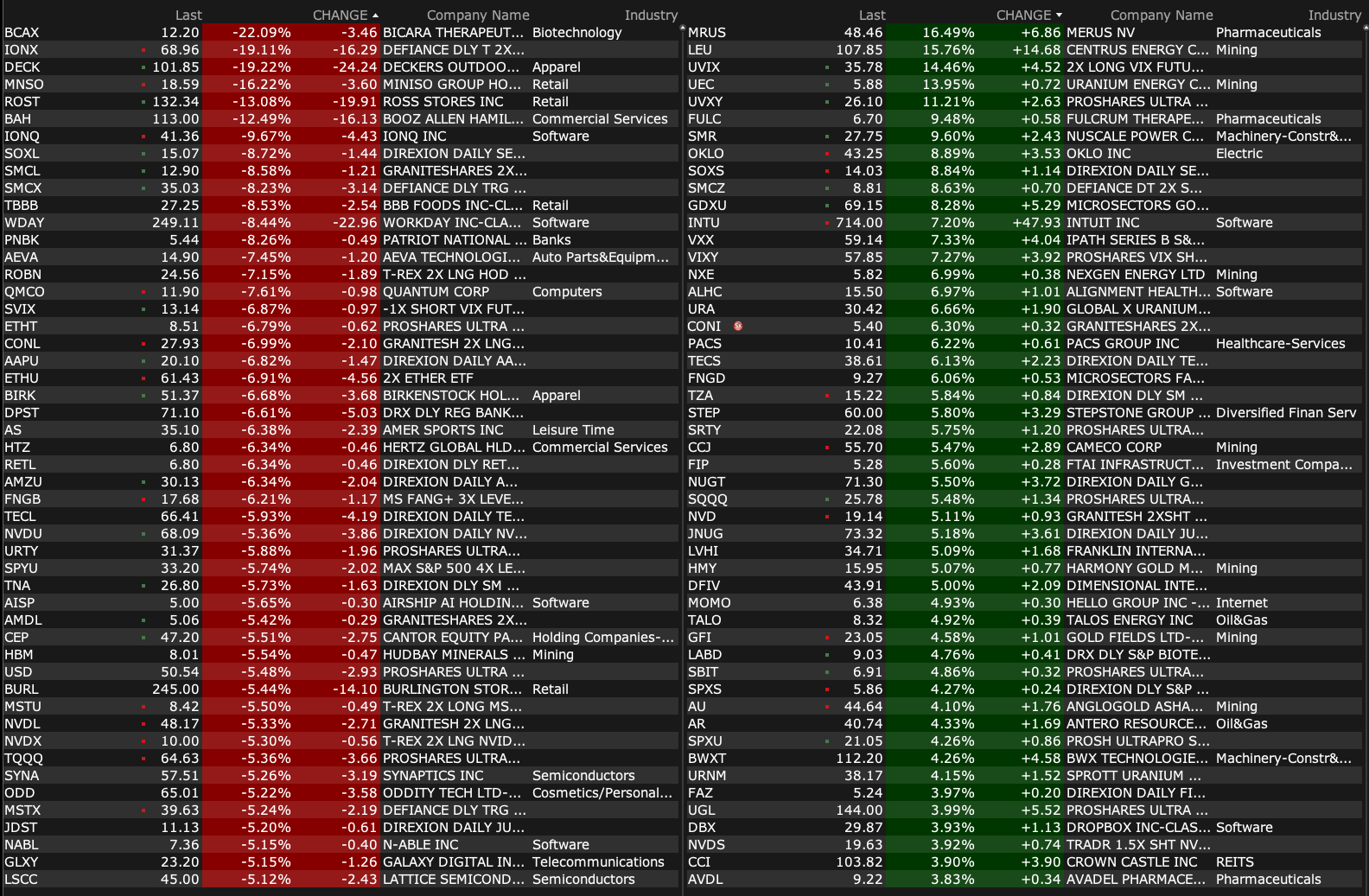 -LITM +18% (nuclear stock strength as President Trump likely to sign executive order to support domestic nuclear energy industry)