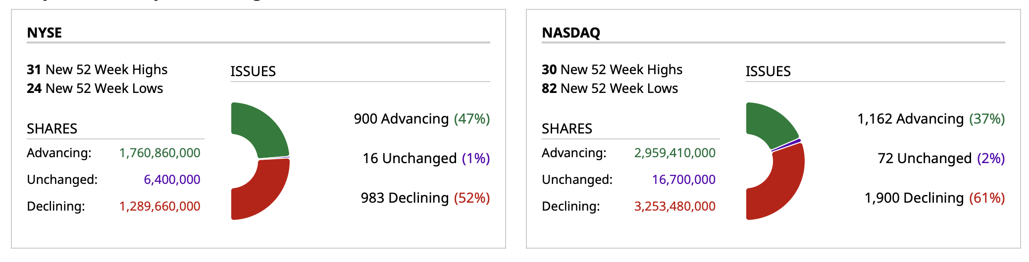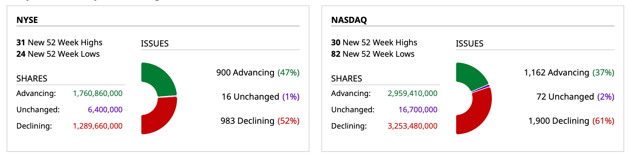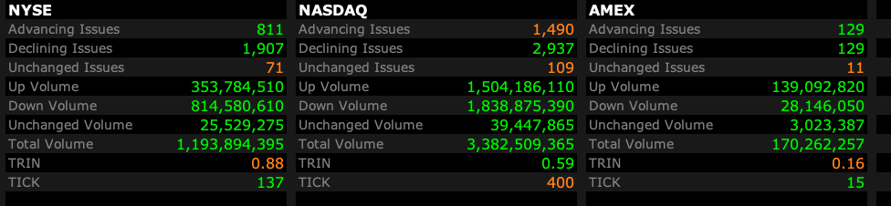 - Nasdaq volume 12% below its one-month average