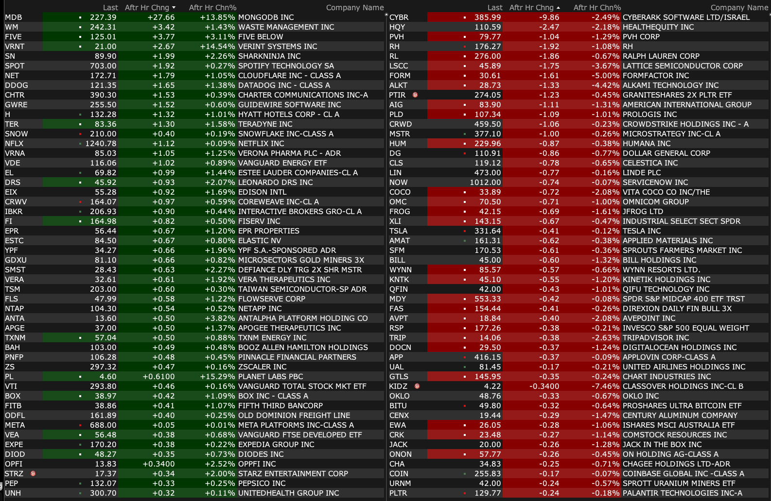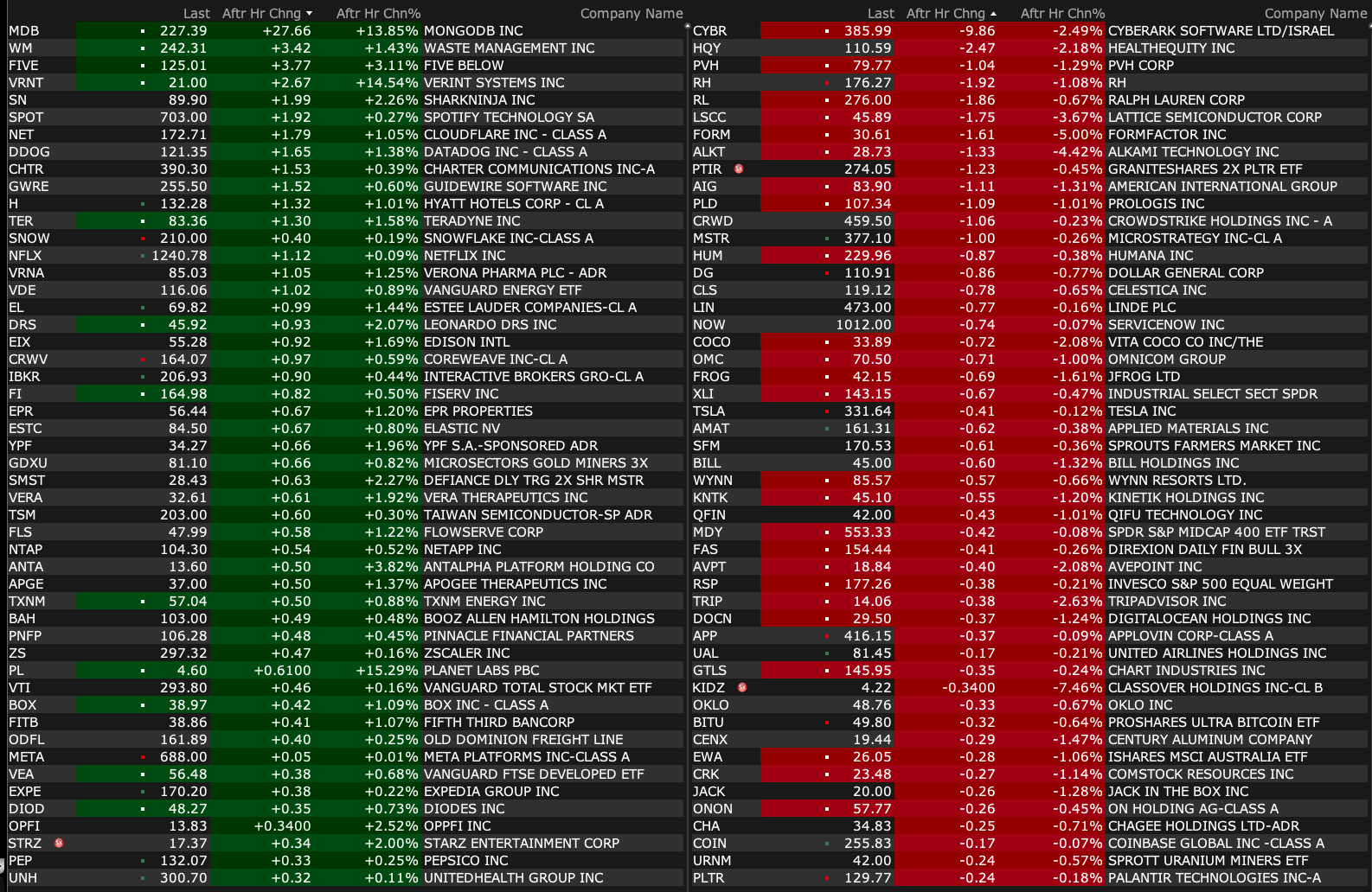 Wednesday's After-Hours Movers