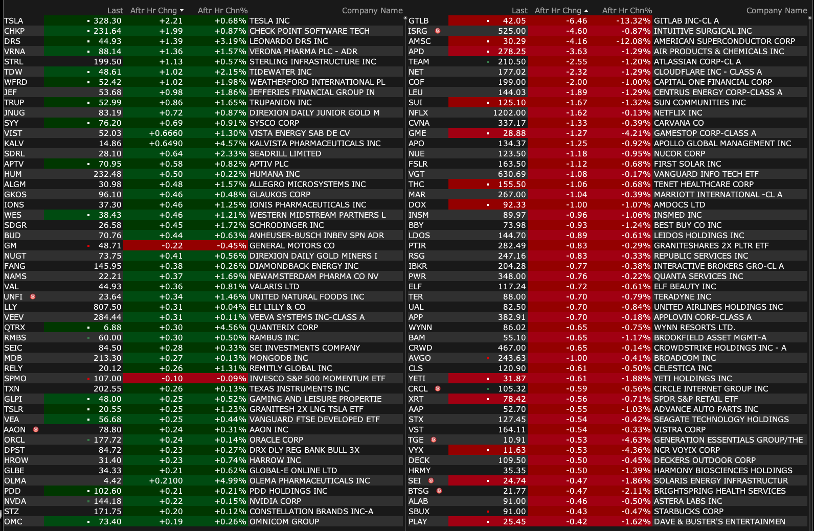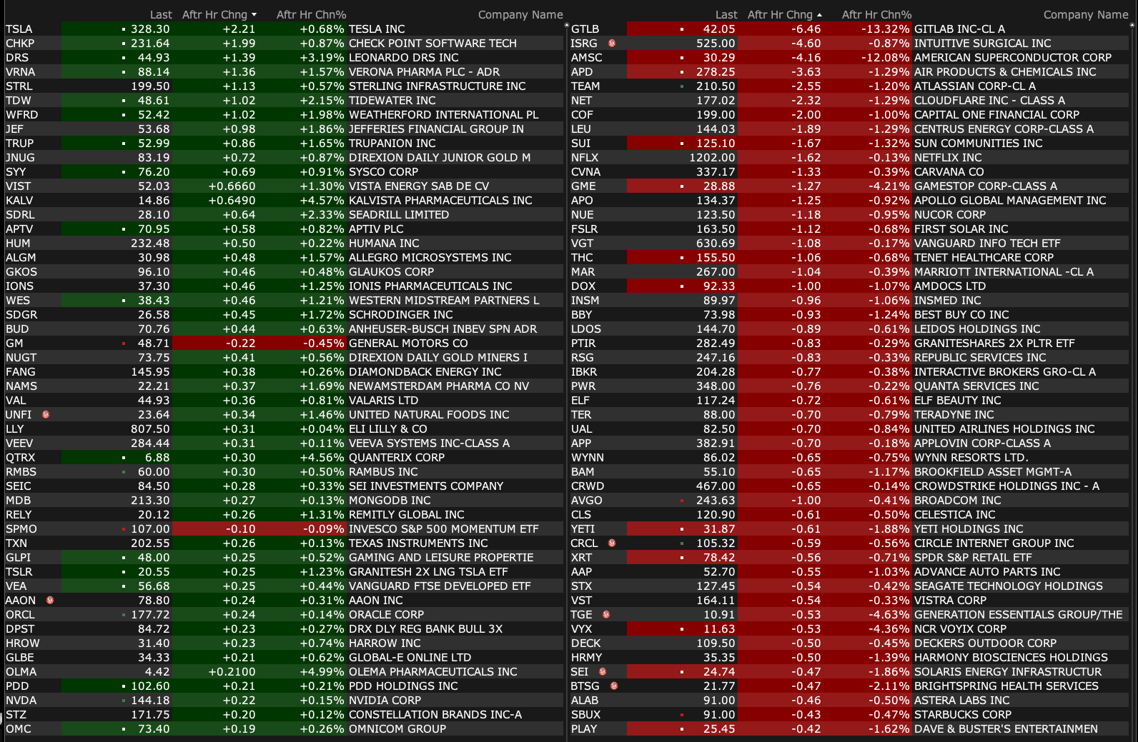 Tuesday's After-Hours Movers