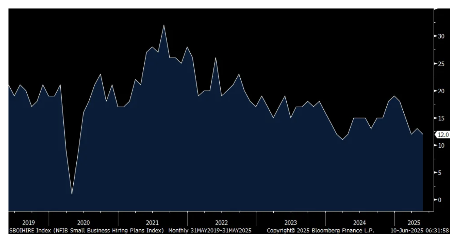 Nothing market moving with this data ever but we know small business is on the front lines of the tariff war as they don't have the financial wherewithal, operational agility and lobbying abilities that their larger peers have.
