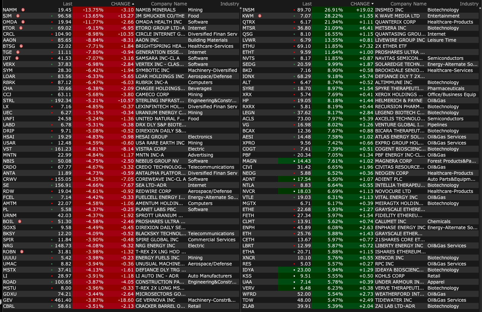 -RBRK -4.0% (files to sell $1.0B offering of Convertible Senior Notes due 2030 in a private placement)