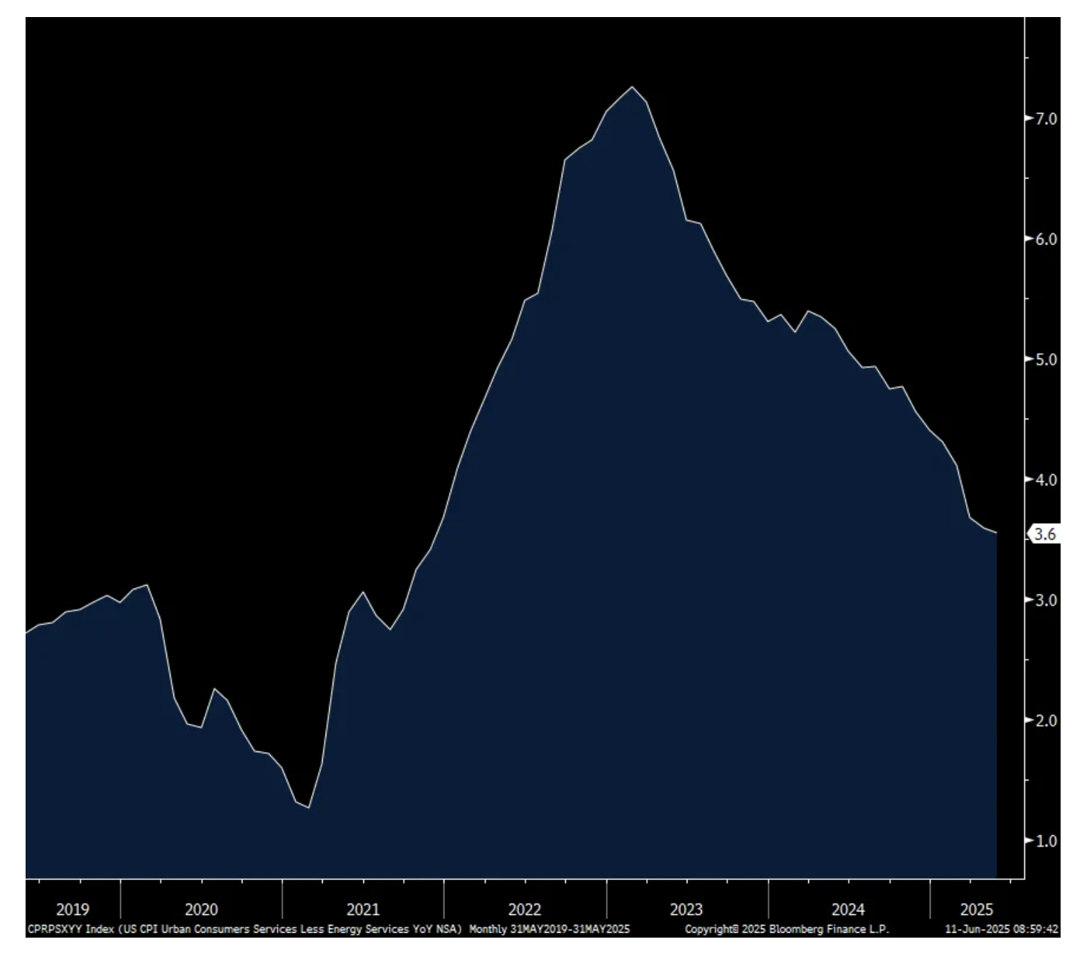 Bottom line, a sigh of relief on the lower than expected inflation stats just as we search for where tariffs will work its way through the supply chain and end customer. Nothing much evident yet of this in goods prices, though maybe an early sign in household related stuff like the 1% one month jump in prices for flooring, 1.1% rise in window coverings, 2.3% jump for appliances, 1.1% increase for tools/hardware and supplies. I do expect core goods prices to head higher in the coming months/quarters but if they don’t, corporate margins are going to take a hit as tariffs will get eat by someone. I expect service prices should recede further this year as rents slow before inflecting higher again next year I believe. Help on how the BLS calculates health insurance costs.