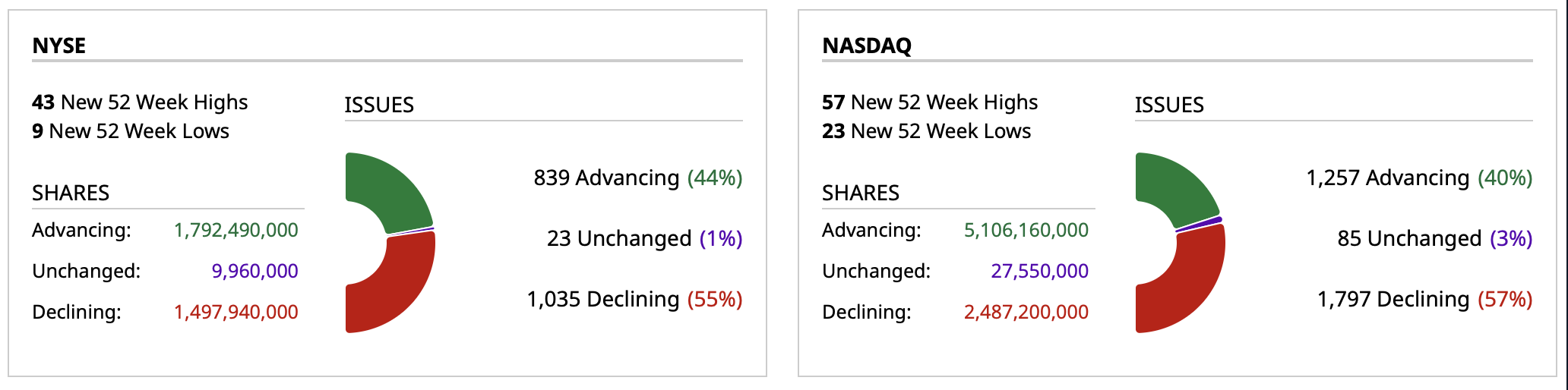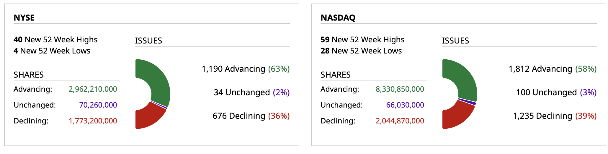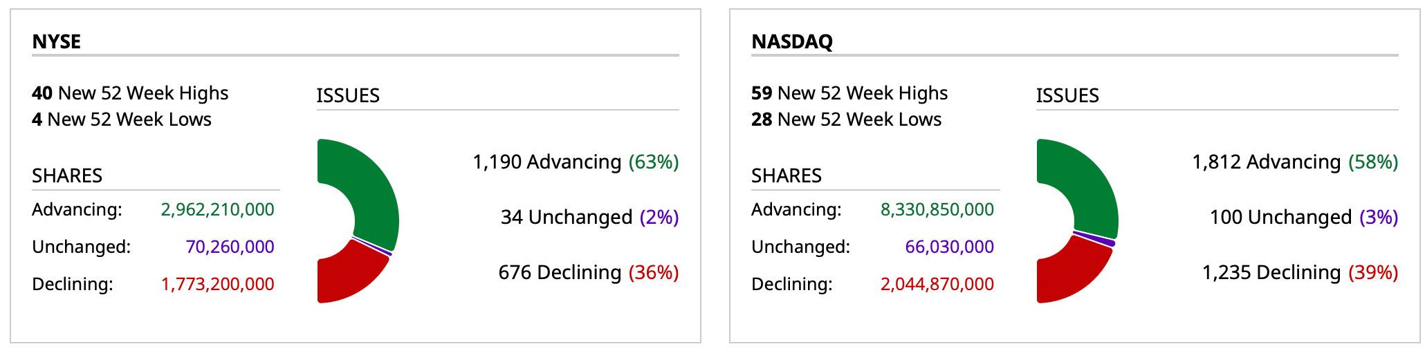 - NYSE volume 6% above its one-month average;
