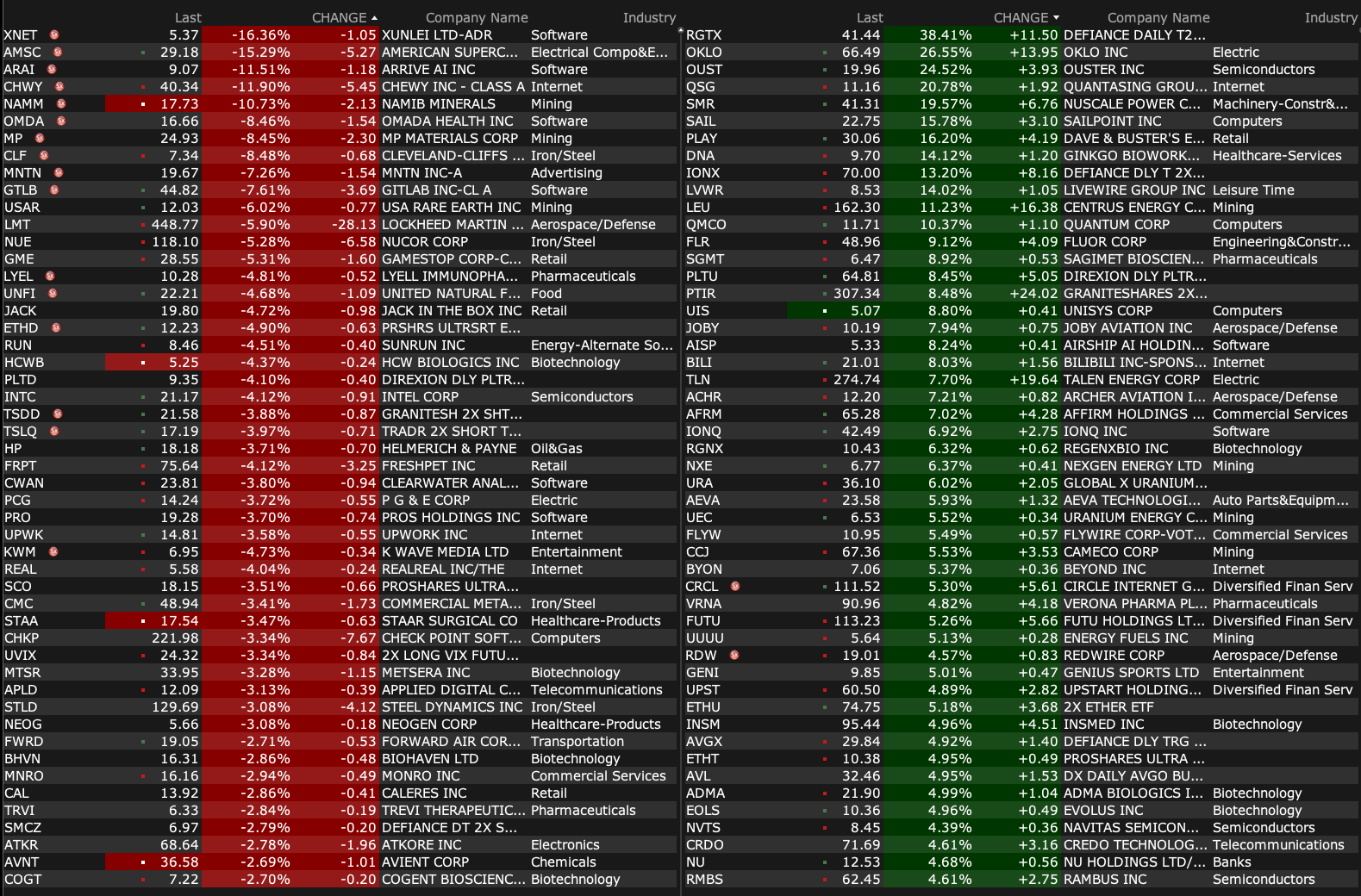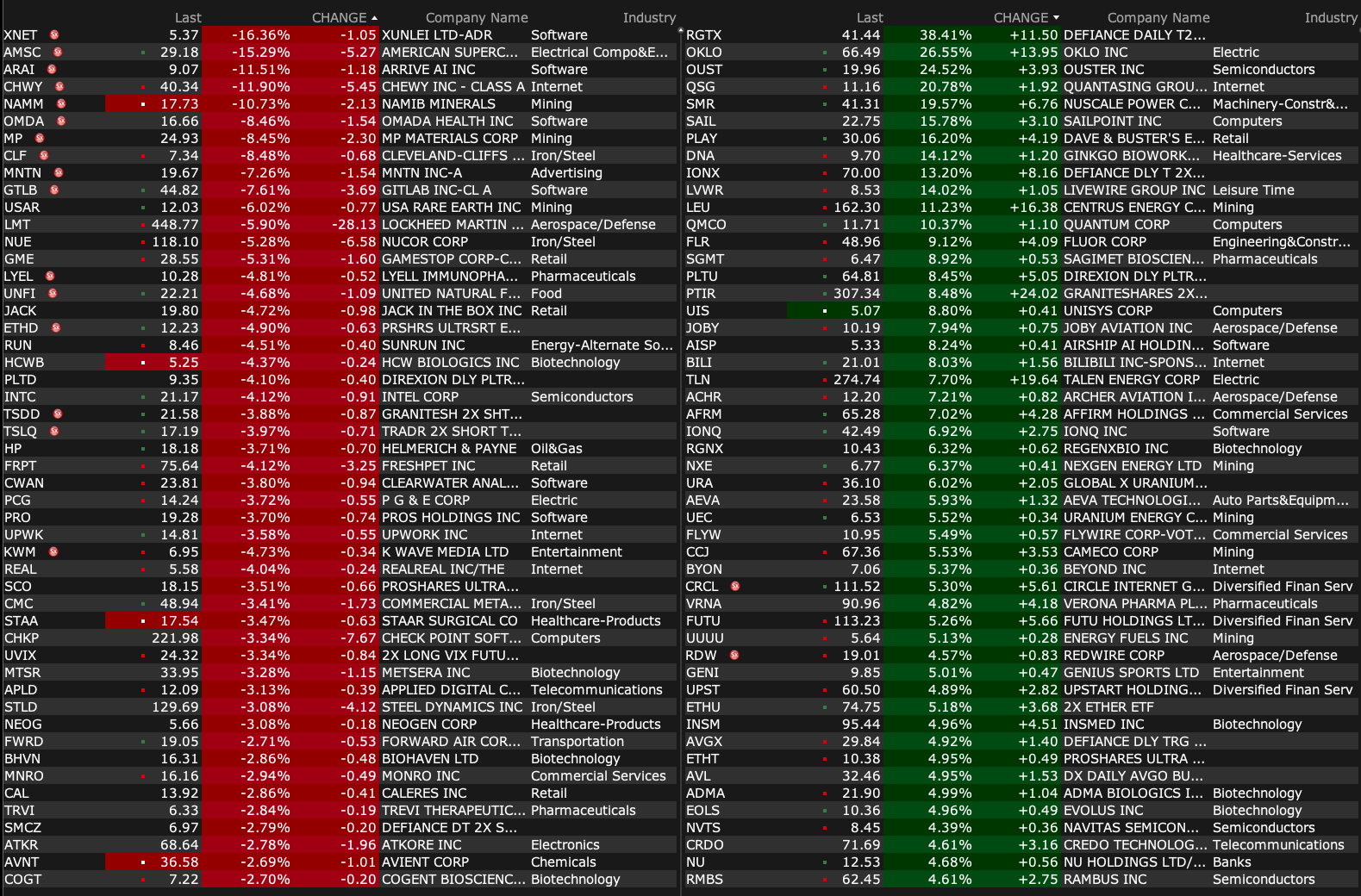 -CLF -5.2% (US and Mexico near deal to cut steel tariffs and set a cap on imports)