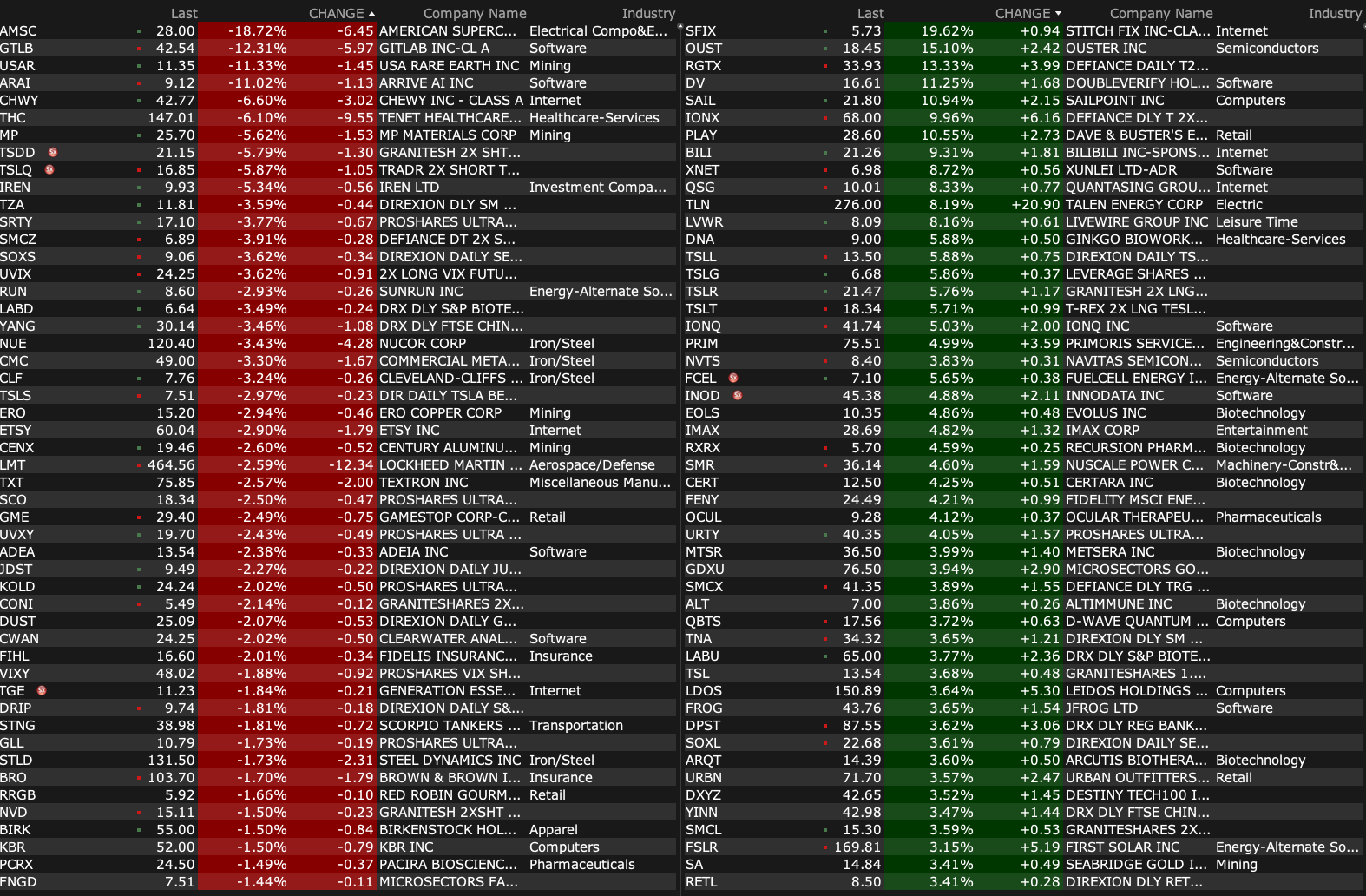 -TLN +7.0% (announces expanding existing nuclear energy relationship with Amazon to provide carbon-free energy from Talen’s Susquehanna nuclear power plant to Amazon Web Services data centers in the region)