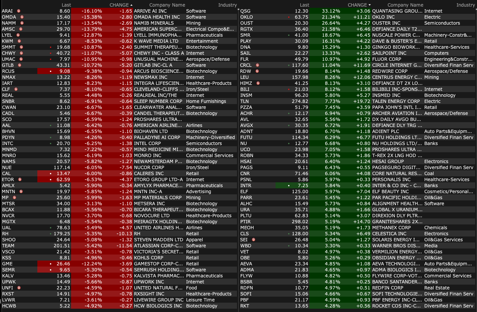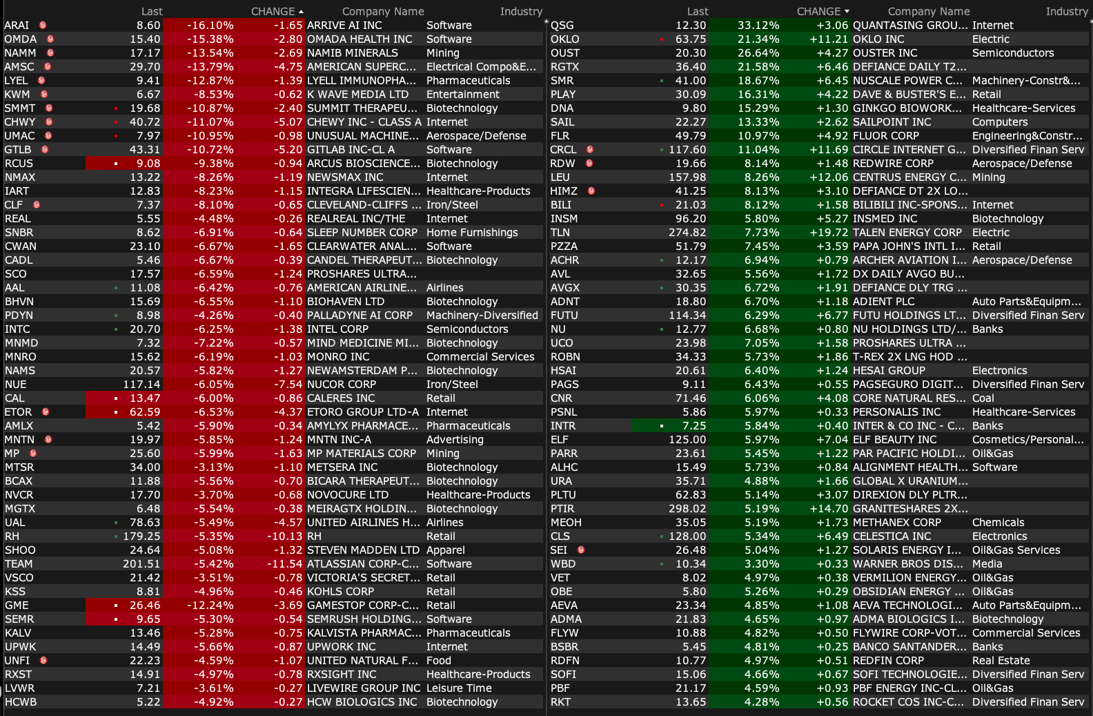 -VXRT +66% (reports positive topline results from the Phase 1 clinical trial evaluating its second-generation oral pill norovirus vaccine constructs head-to-head against its first-generation constructs)