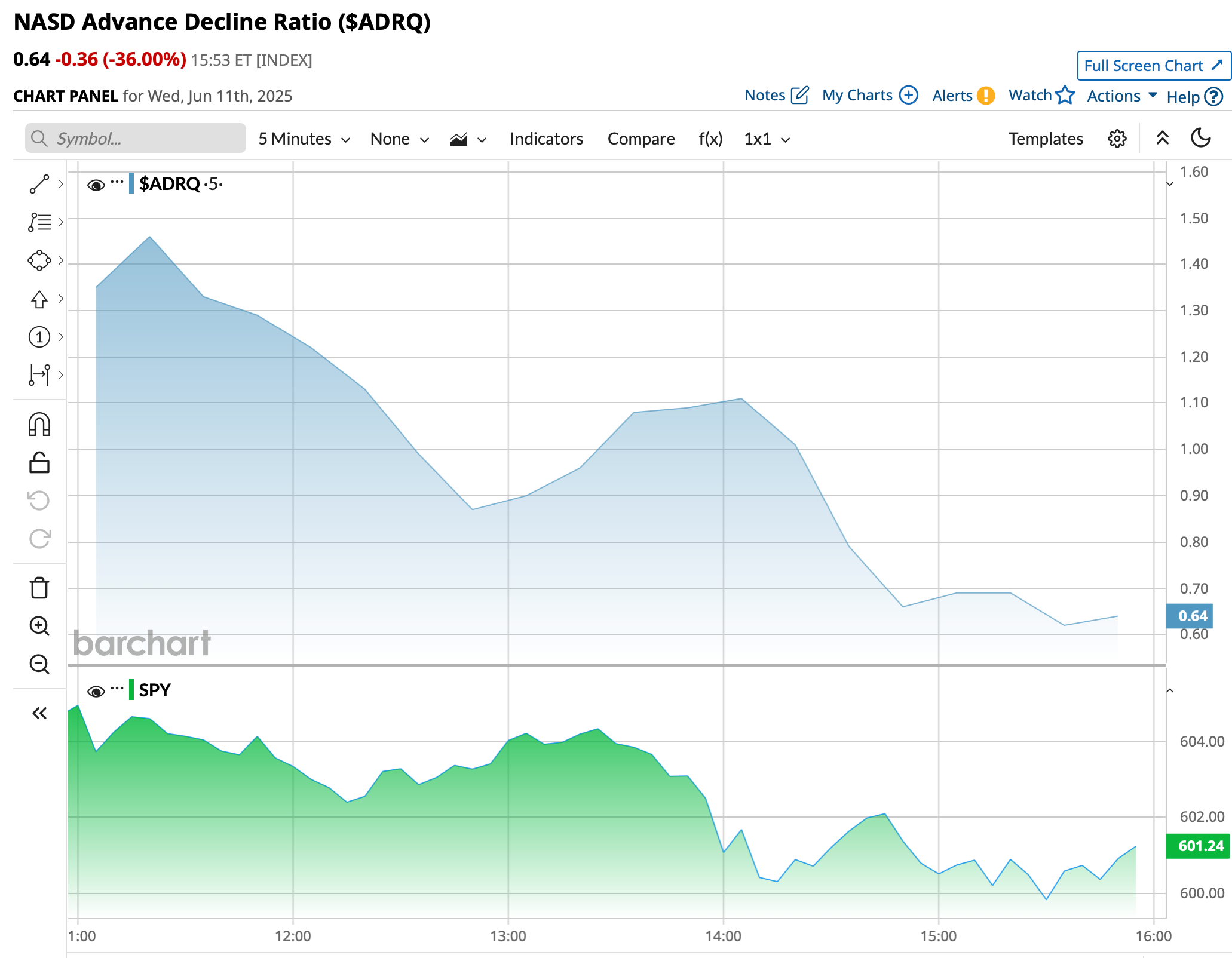 - NASDAQ volume 11% above its one-month average;