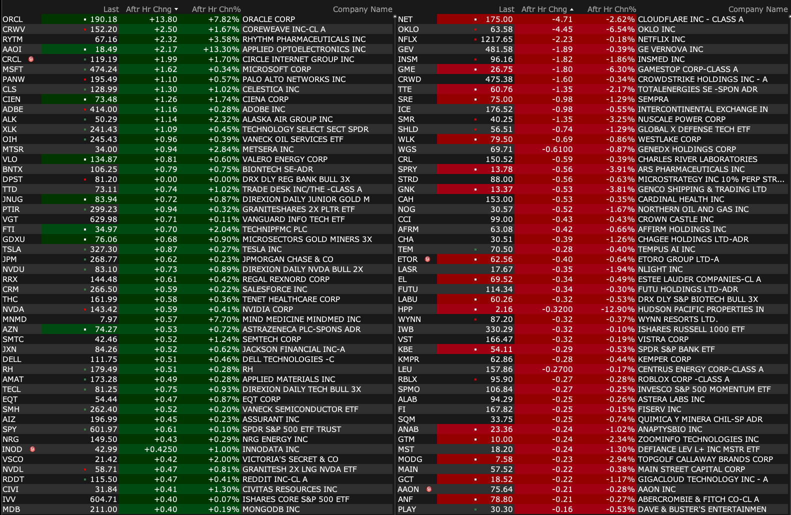 Wednesday's After-Hours Movers
