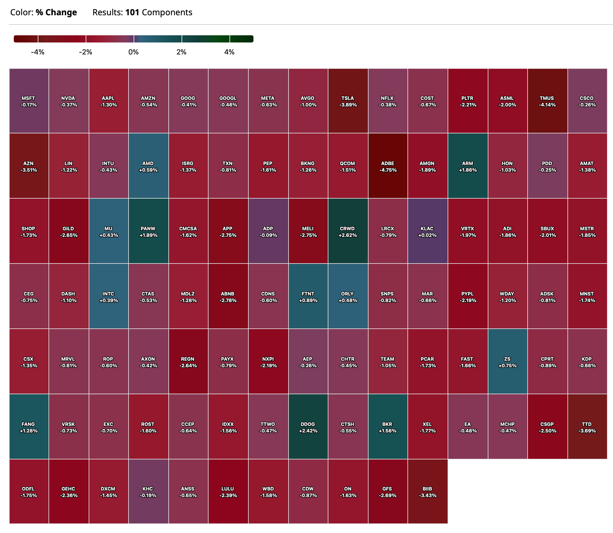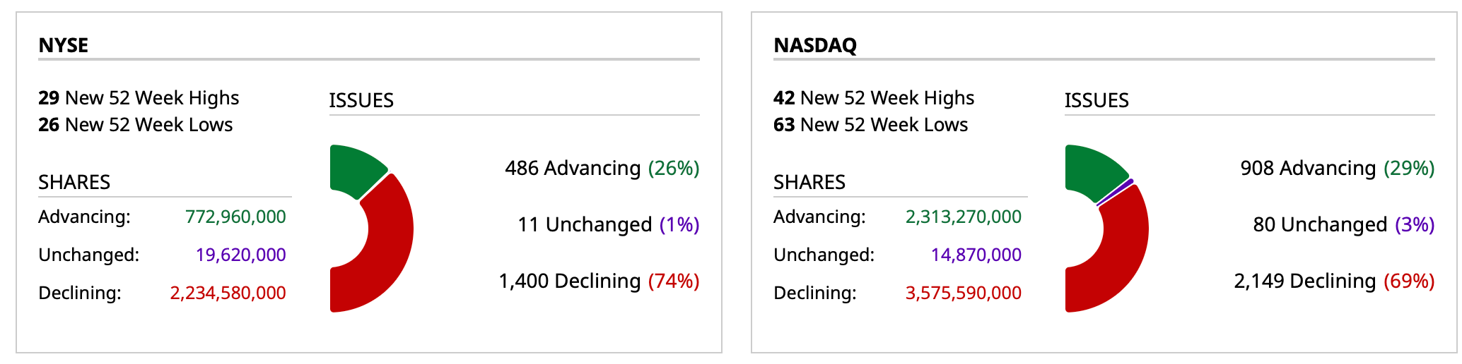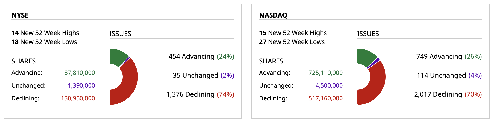 - NASDAQ volume 13% below its one-month average;