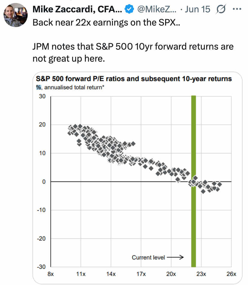 The Israeli/Iran conflict (now into its fourth day) is yet another of a long list of uncertainties that investors face. And with a starting point of a 22.5-times price earnings ratio, investors are underappreciating and underpricing risk: