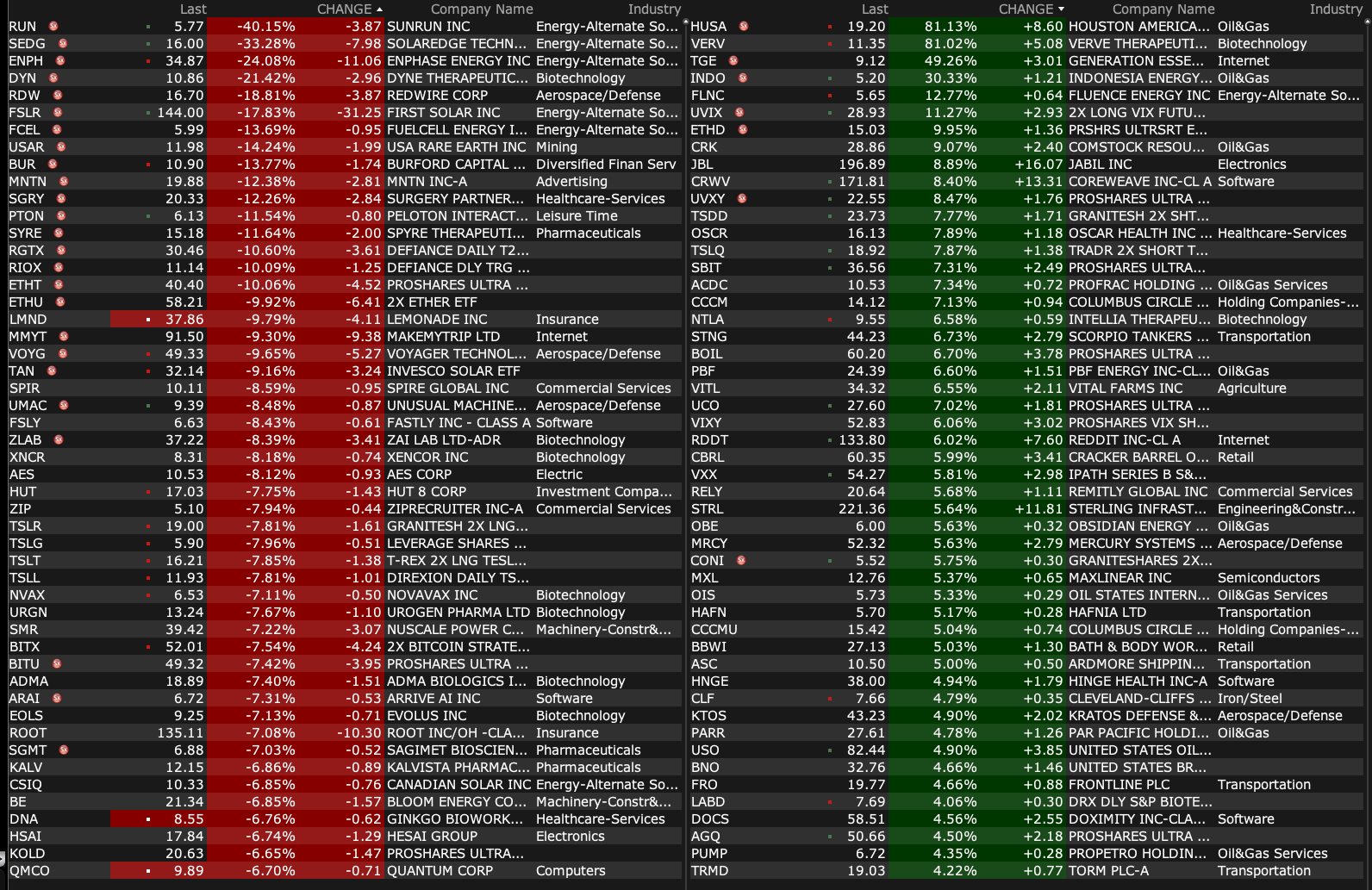 -OKLO +5.0% (nuclear power company strength following US Senate extending credits for nuclear energy to 2036)