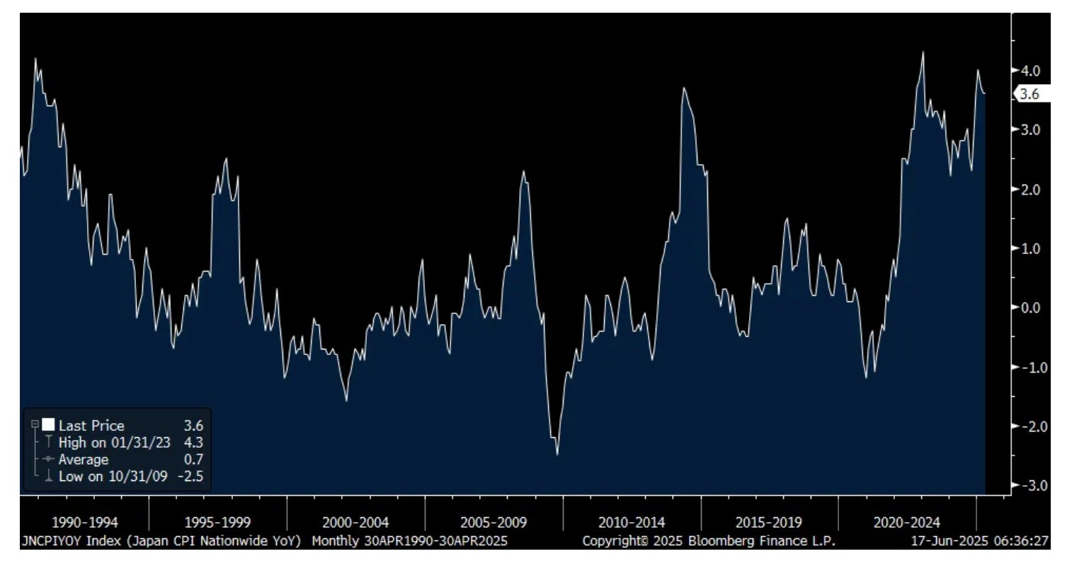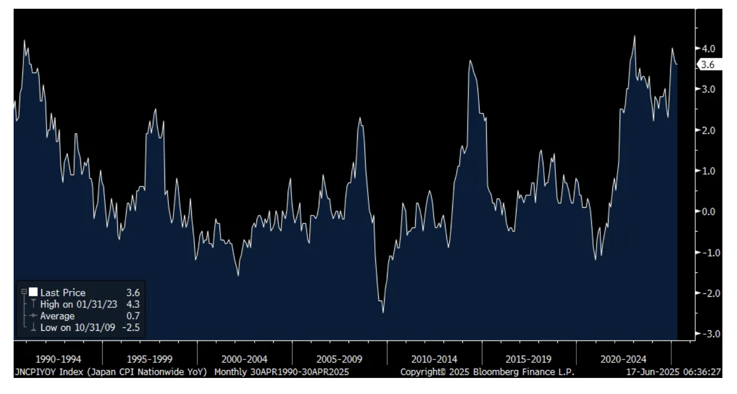 I want to chime in again on the tariff/inflation debate as I continue to believe it is just too simplistic to say tariffs are a one time step up in price, therefore it's not inflationary. Now, there is a great example of a one time step up in price and that was over the years when the Japanese government would raise the value added tax. Note on the chart below that almost each spike was due to that. One time step up in price with no follow through.