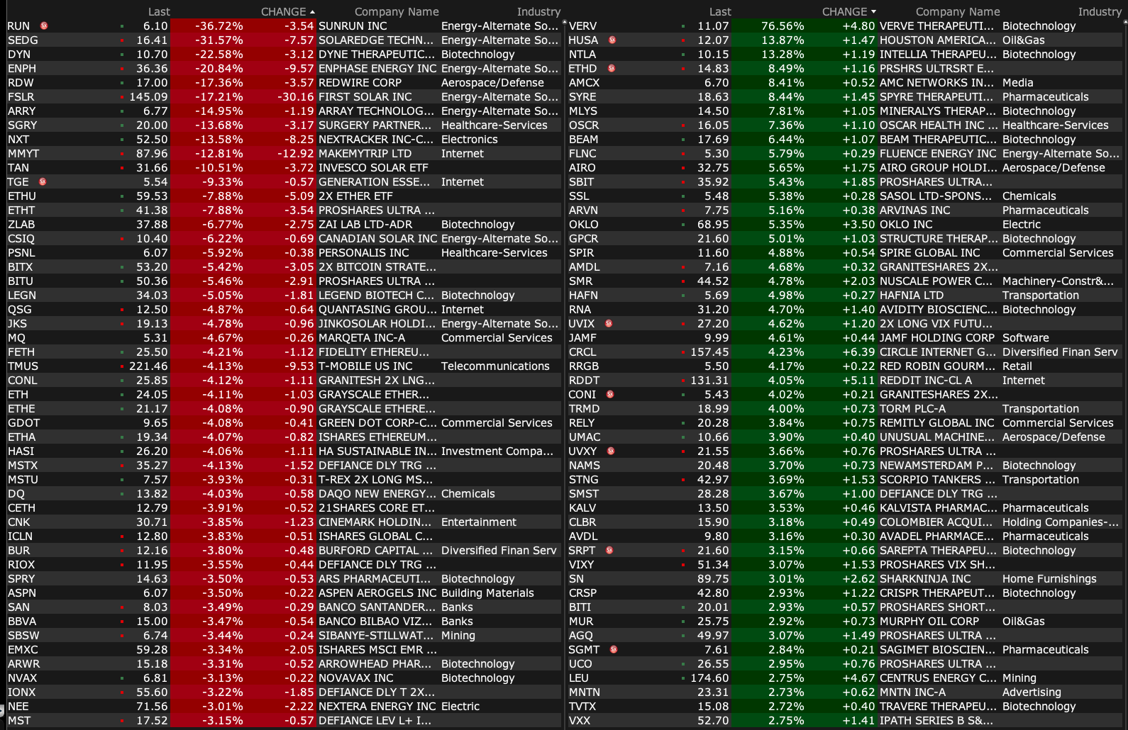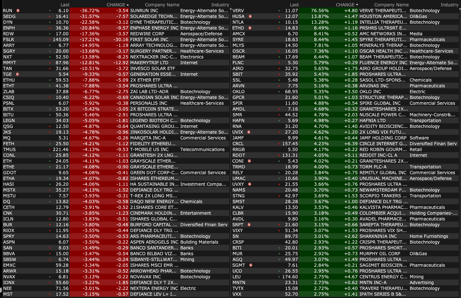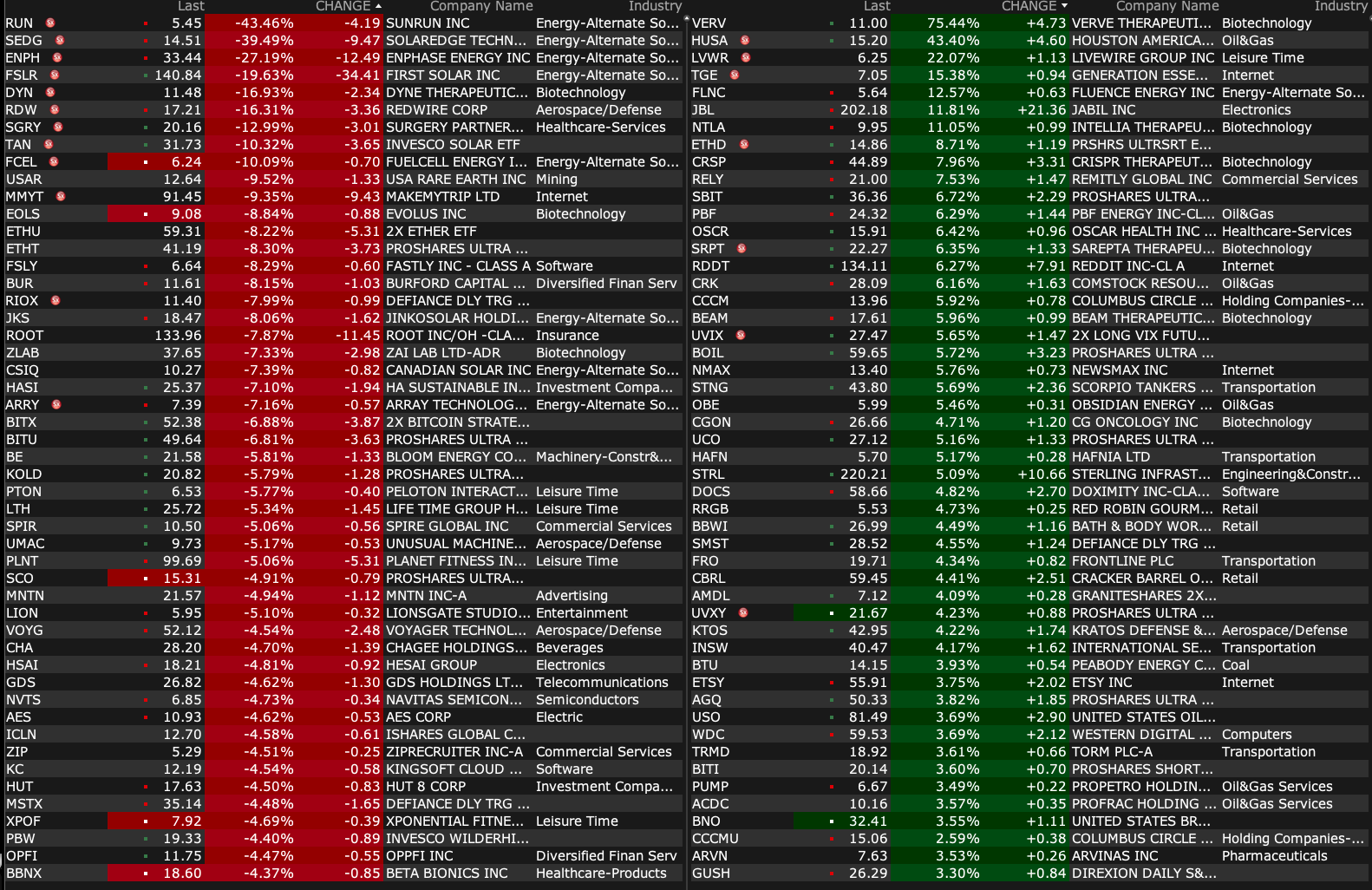 -DYN -19% (US FDA has granted Breakthrough Therapy Designation to DYNE-101 for the treatment of myotonic dystrophy type 1)