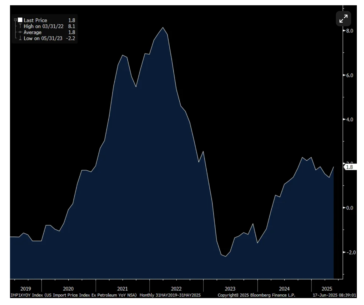 If there is an inflation stat that would most quickly reflect the price impact from tariffs it would be today's import price data for May. But, also of importance is to see what the US dollar weakness is doing in terms making imports more expensive.