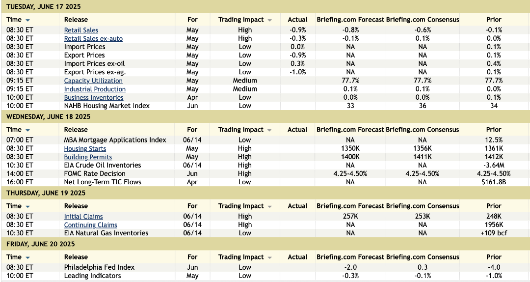 Today’s session may be more volatile than yesterday’s given (i) no new trade deals emanating from G7; (ii) the first draft of the Senate bill points to July 4 likely being too optimistic to complete the bill; (iii) corporate sector pushback to Section 899 (BBG); and (iv) heightened uncertainty surrounding both Israel/Iran and Russia/Ukraine. Keep an eye on Retail Sales as a stronger number than can help buttress the idea that the US Consumer can continue to support the economy as the various trade, tax, and monetary policy outlooks solidify.