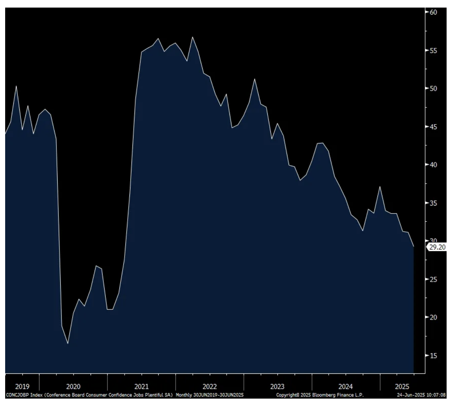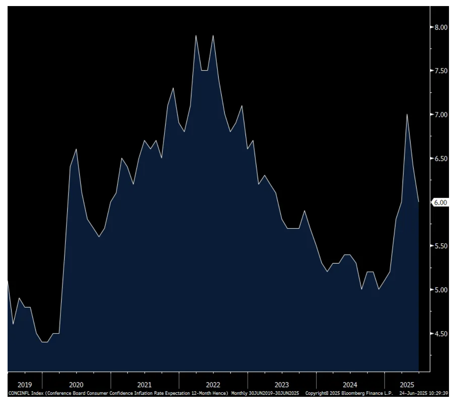 o IMPROVING TRADE WAR RHETORIC – Recent headlines point to potential deals with the EU, India, Japan, and Vietnam around the July 9 expiration of the tariff moratorium. Bessent had mentioned rolling that date for countries negotiating in good faith. A reversion to ‘Liberation Day’ levels would be negative for risk assets and think the Trump Put kicks in before that happens. If not before that day, the subsequent hit to risk assets and spike in vol would likely re-active the Trump Put. We see a full return to ‘Liberation Day’ levels as a low probability event.