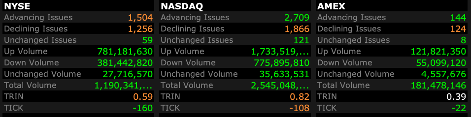 - NYSE volume 3% above its one-month average;