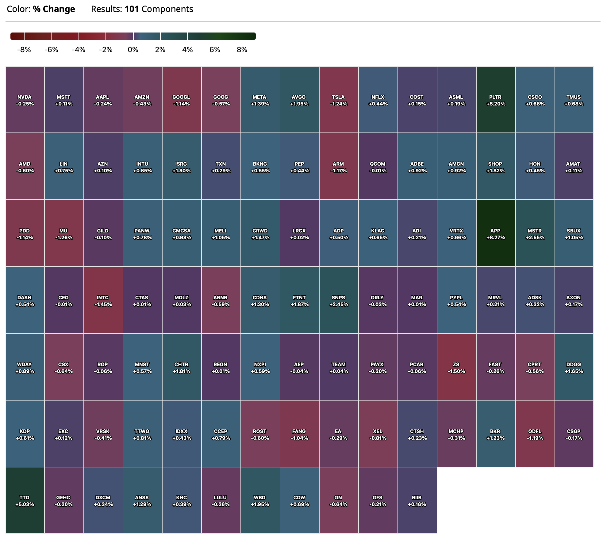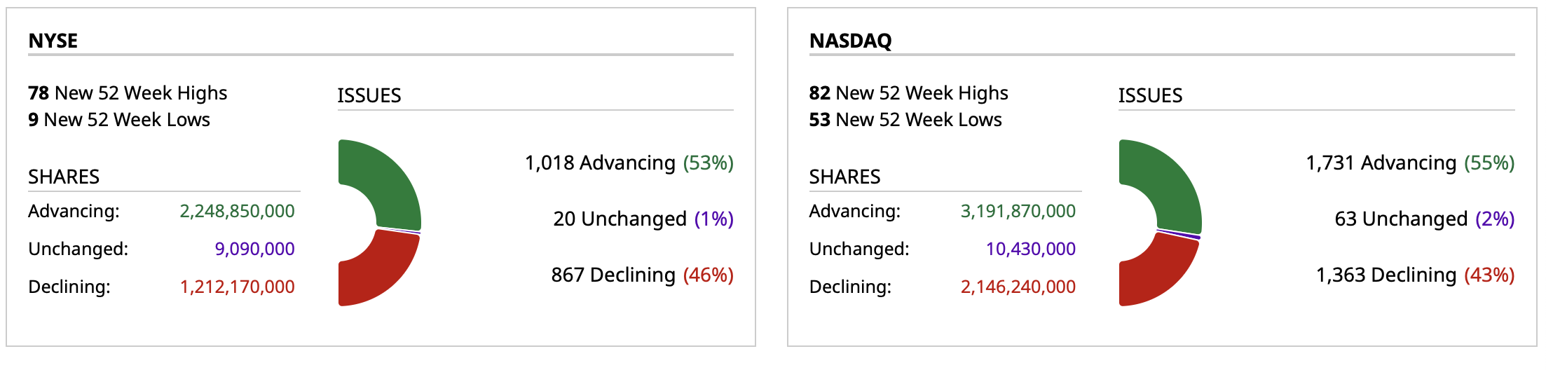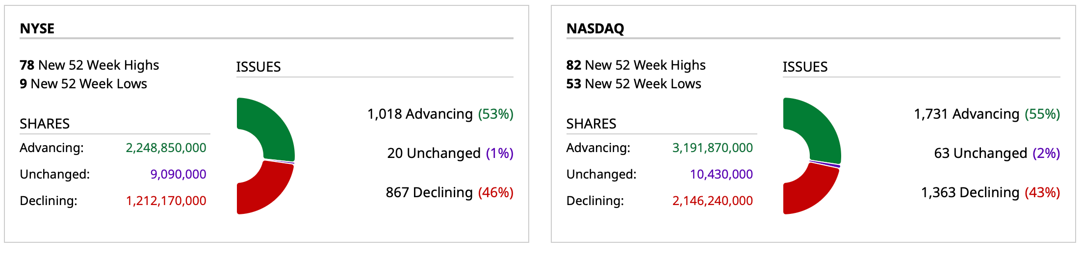 - Nasdaq volume 23% below its one-month average;