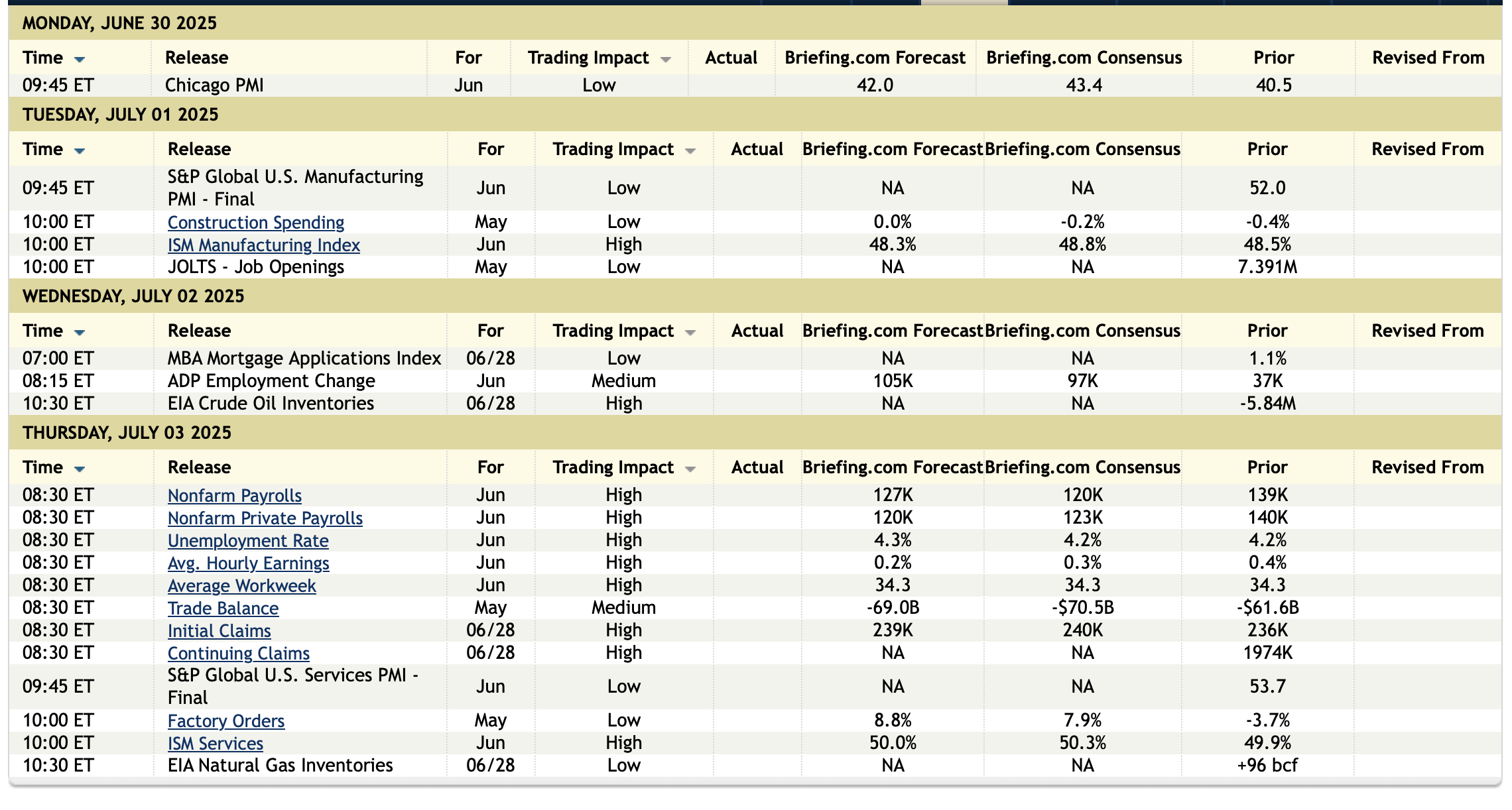1:00PM: Fed Bank of Chicago President Goolsbee (Voter) participates in a moderated question-and-answer session before the Aspen Ideas Festival 2025, Aspen, CO (Livestream at https://www.chicagofed.org/publications/speeches/2025/june-30-aspen-ideas-festival. Embargoed text TBD)