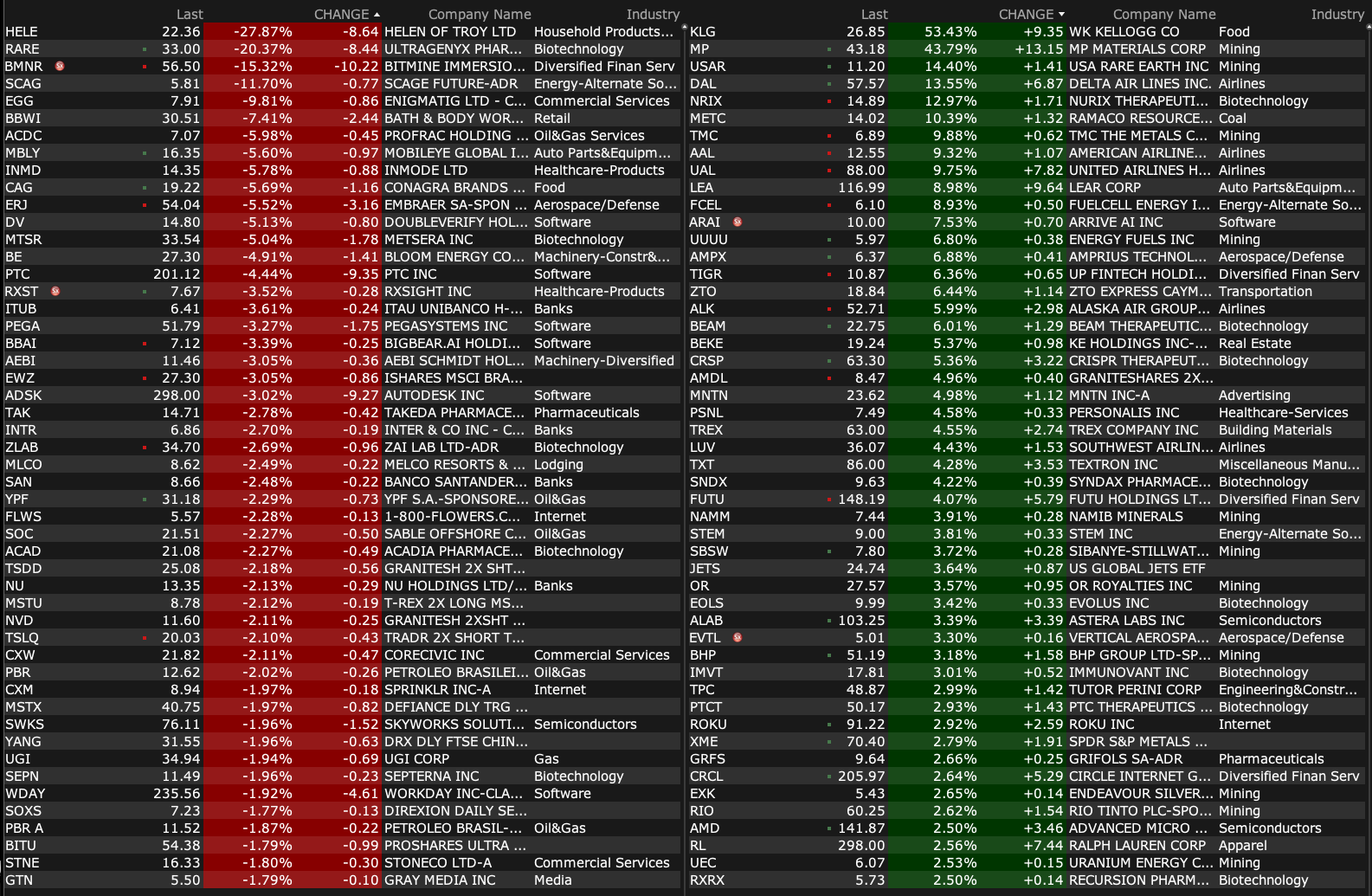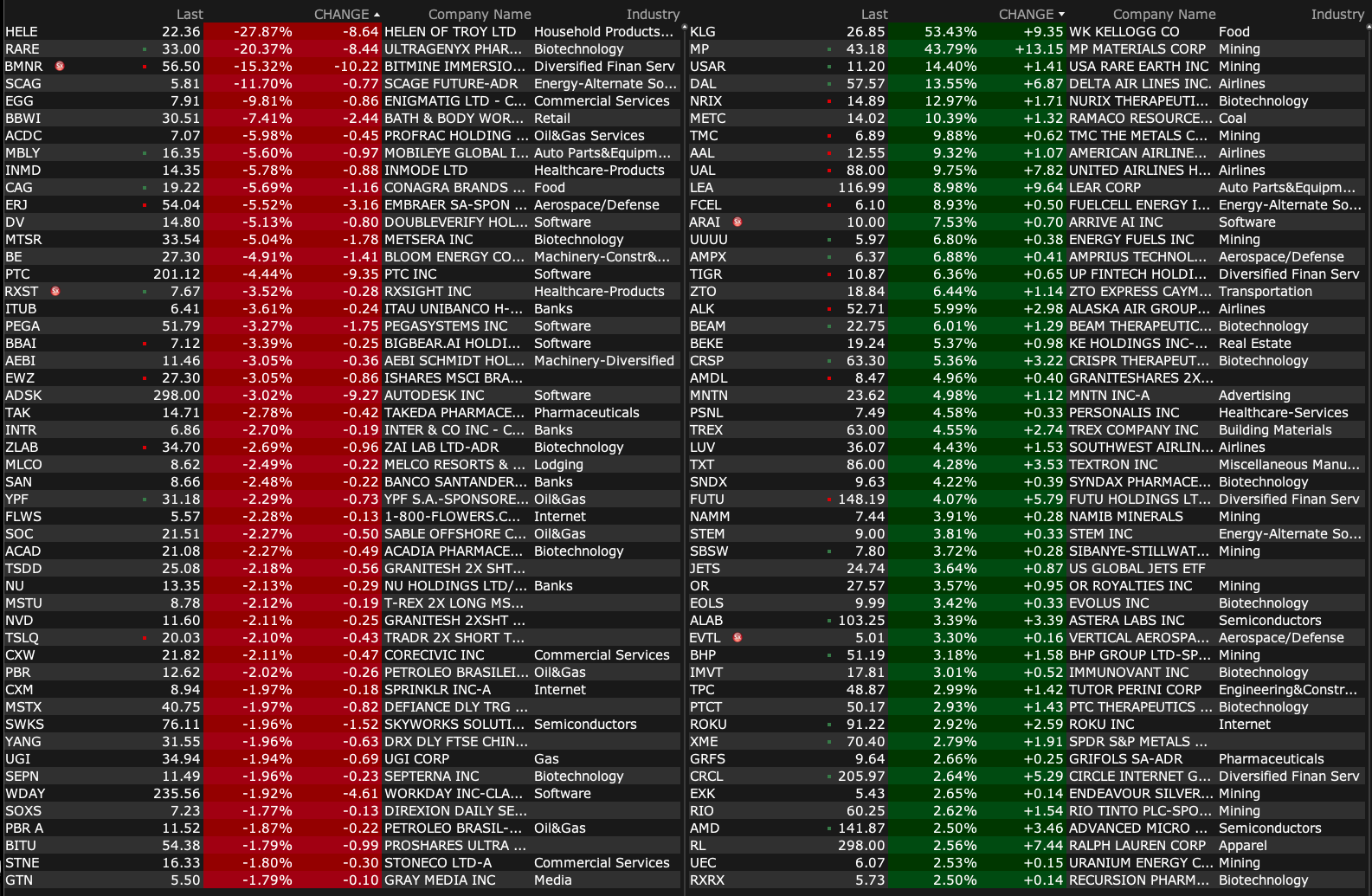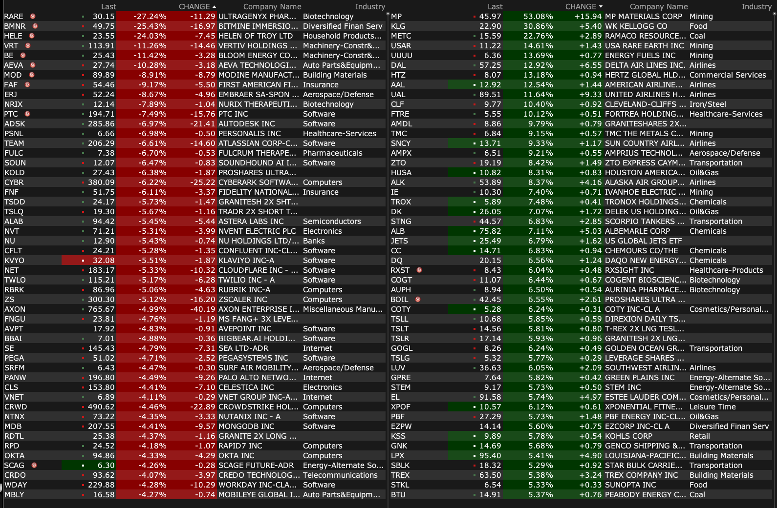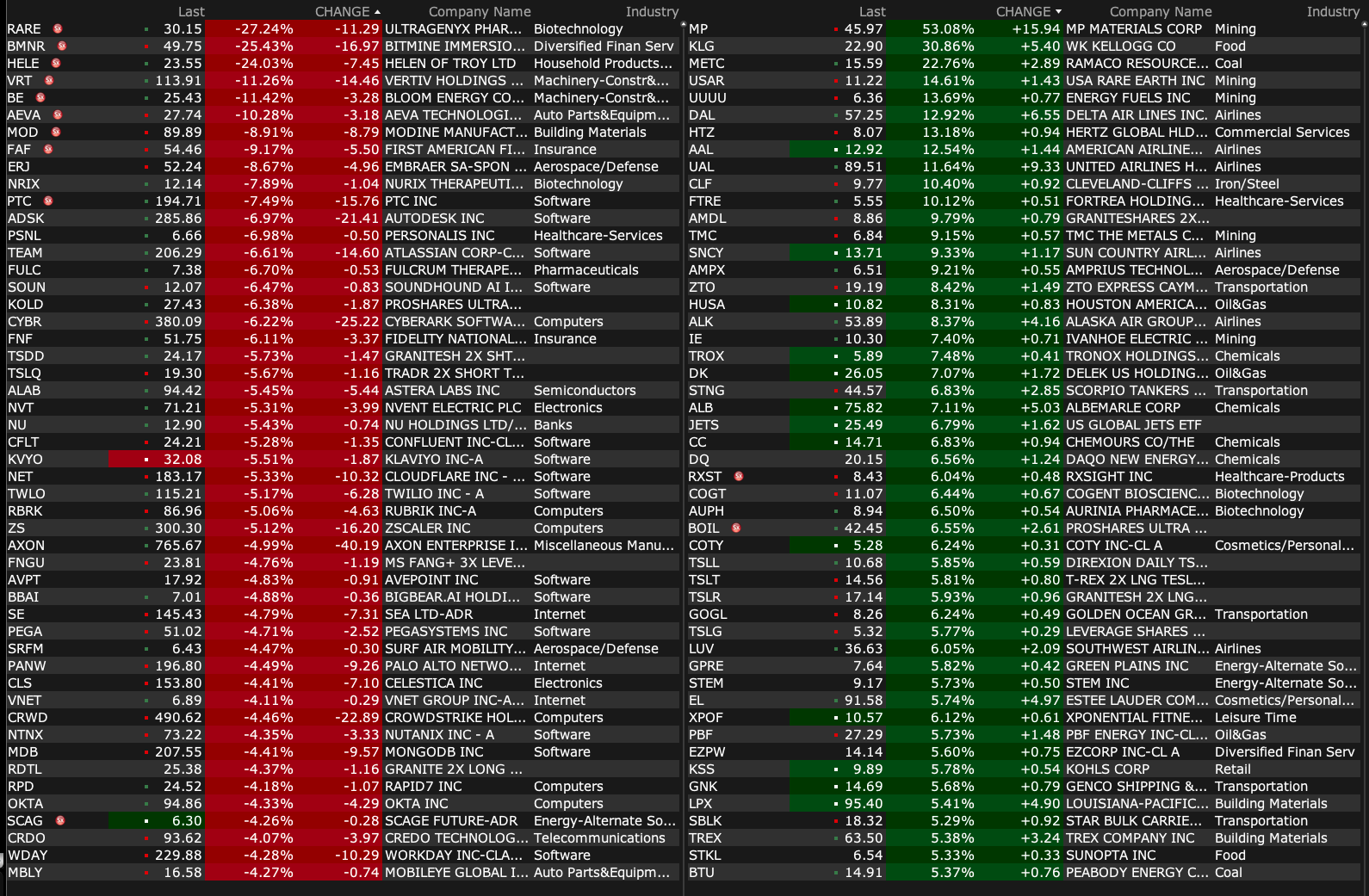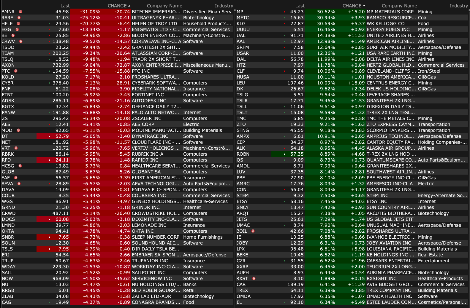 -MP +43% (signs public-private partnership and multibillion-dollar package of investments with the US Dept of Defense to accelerate the build-out end-to-end U.S. rare earth magnet supply chain)