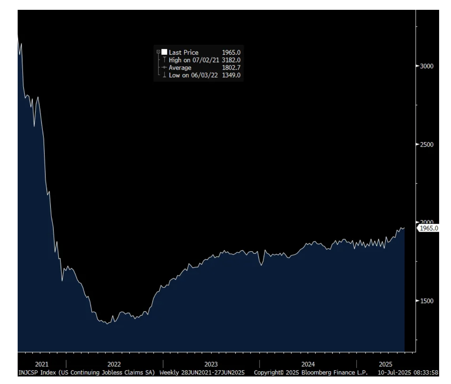 Bottom line, as stated, let’s wait until next week’s initial claims data to smooth out July 4th’s influence. That said, the elevated level of continuing claims points to the moderation we’ve seen in hiring.