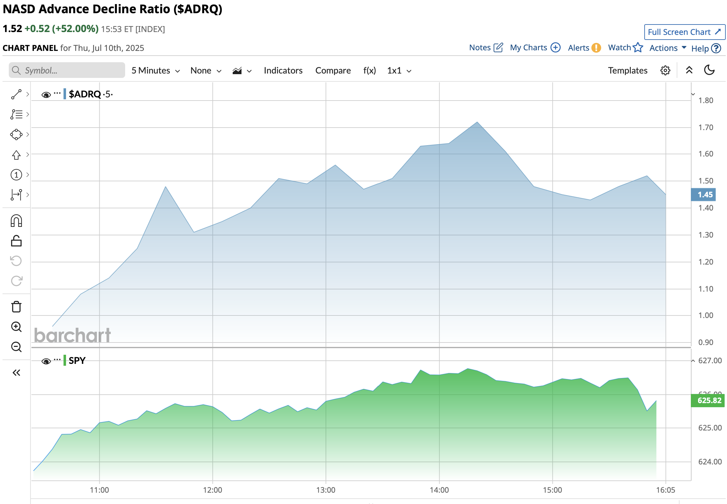 * Added to index shorts: SPY at $625.31, QQQ at $556.19