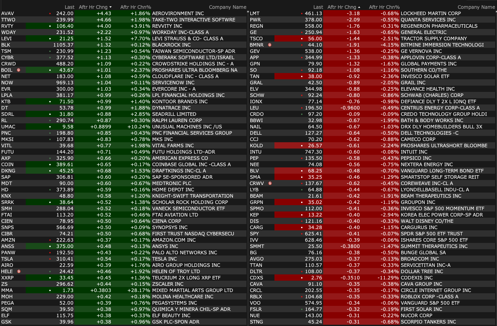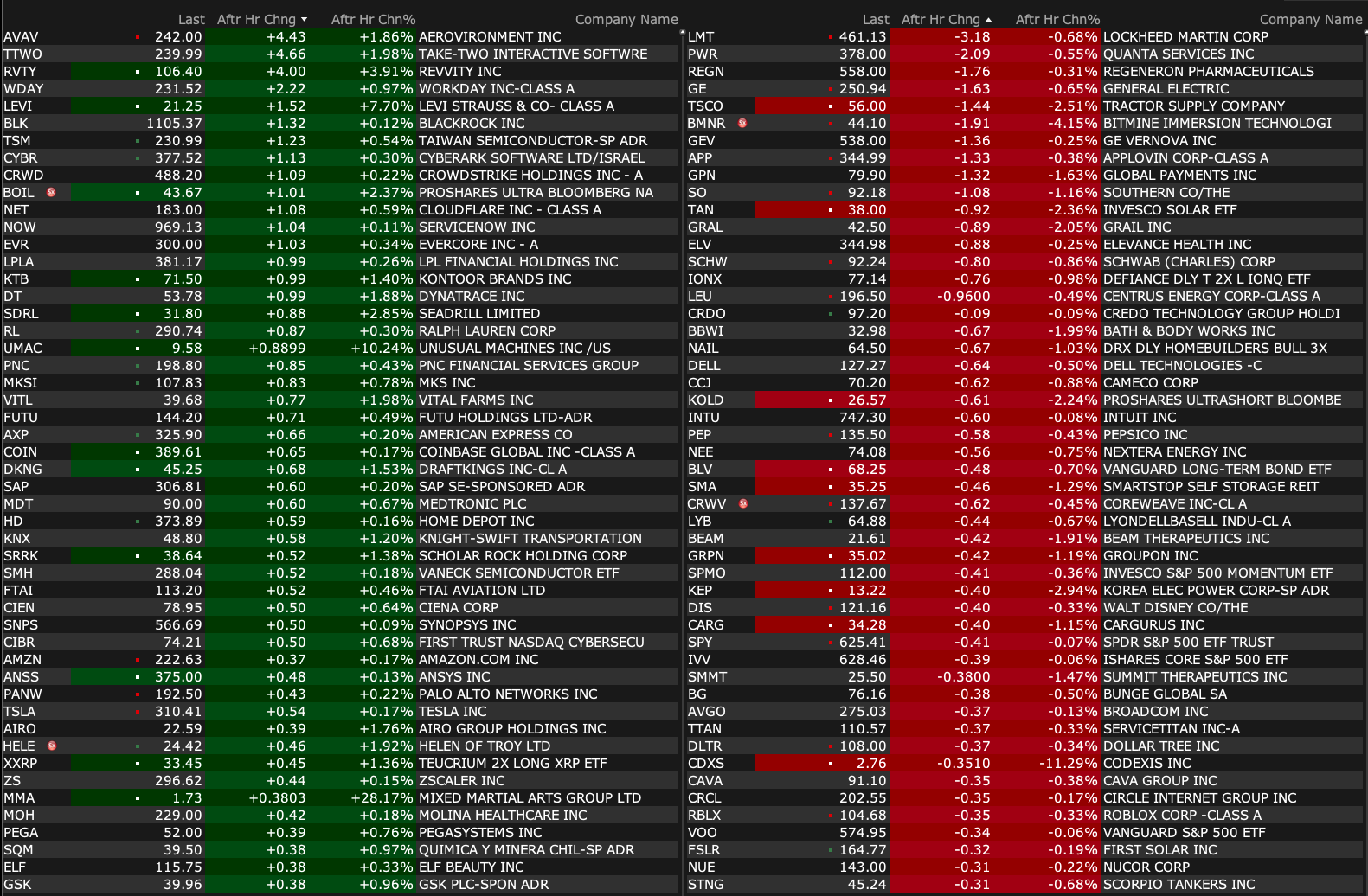 Thursday's After-Hours Movers