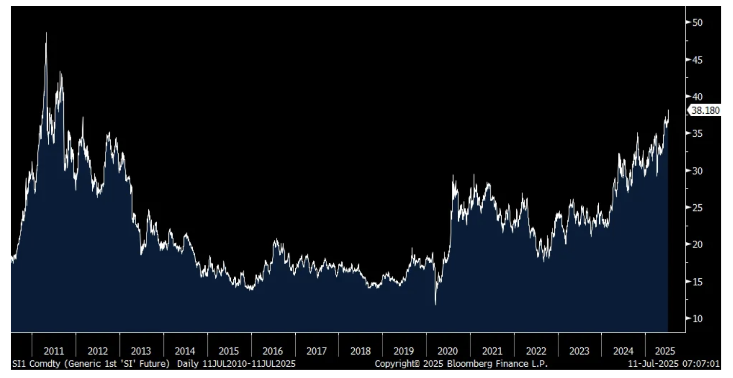 It's not just copper prices that continue to rally, silver today is up about 3% to the highest level since 2011 and we remain bullish and long.