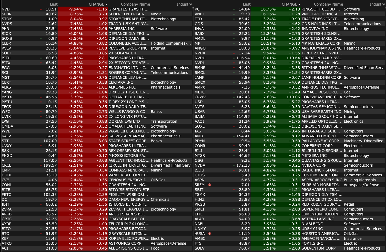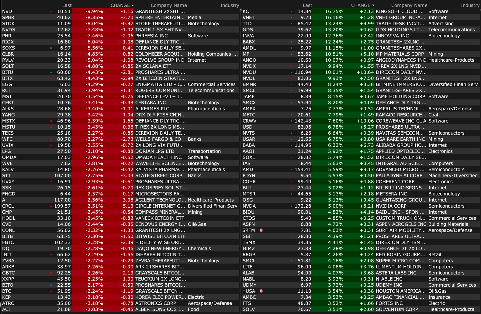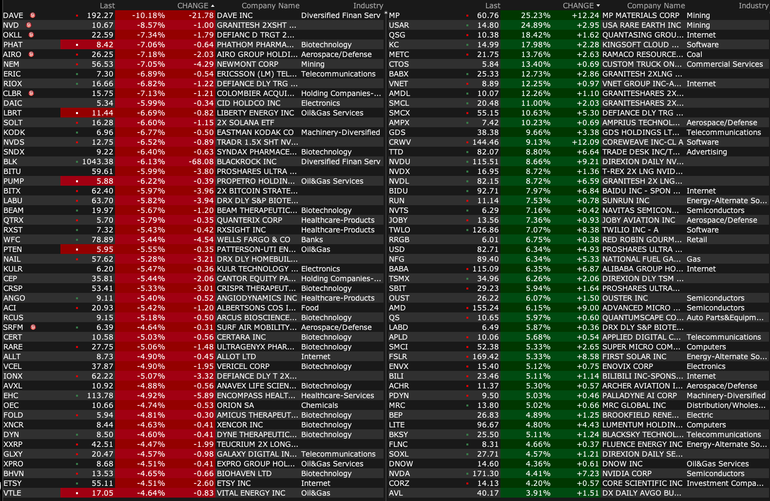 -CRWV +7.1% (to commit up to $6B to equip a new, state-of-the-art data center in Lancaster, Pennsylvania, purpose-built to power the most cutting-edge AI use cases)